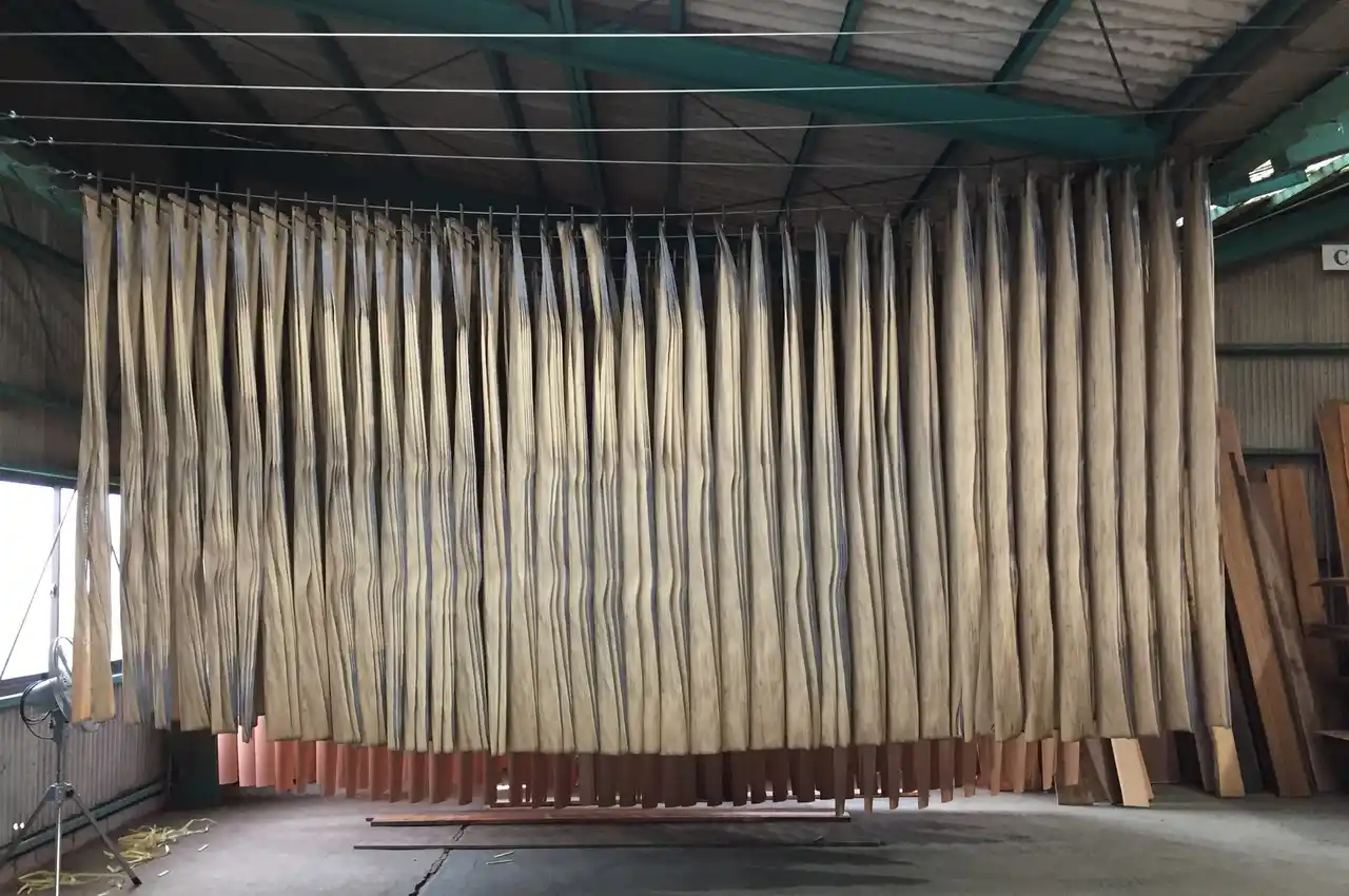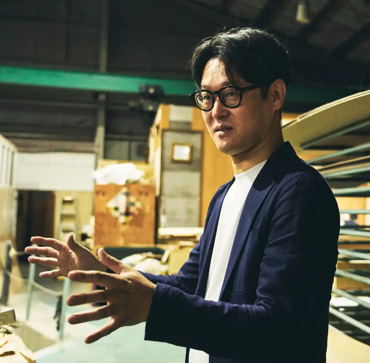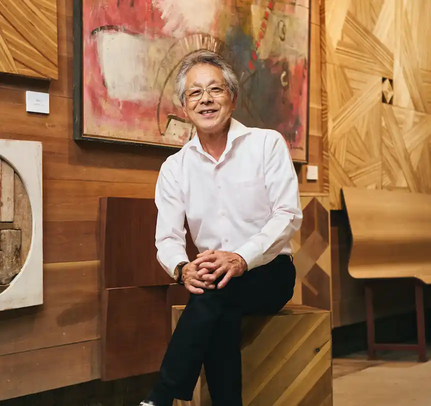 また、元会長による年輪突板作品「ラジアタブルー」が、フランスのサロン・ド・アール・ジャポネで最優秀賞を受賞した実績を持ち、長年培ってきた突板加工技術と手仕事へのこだわりが作品の基盤となっています。 |