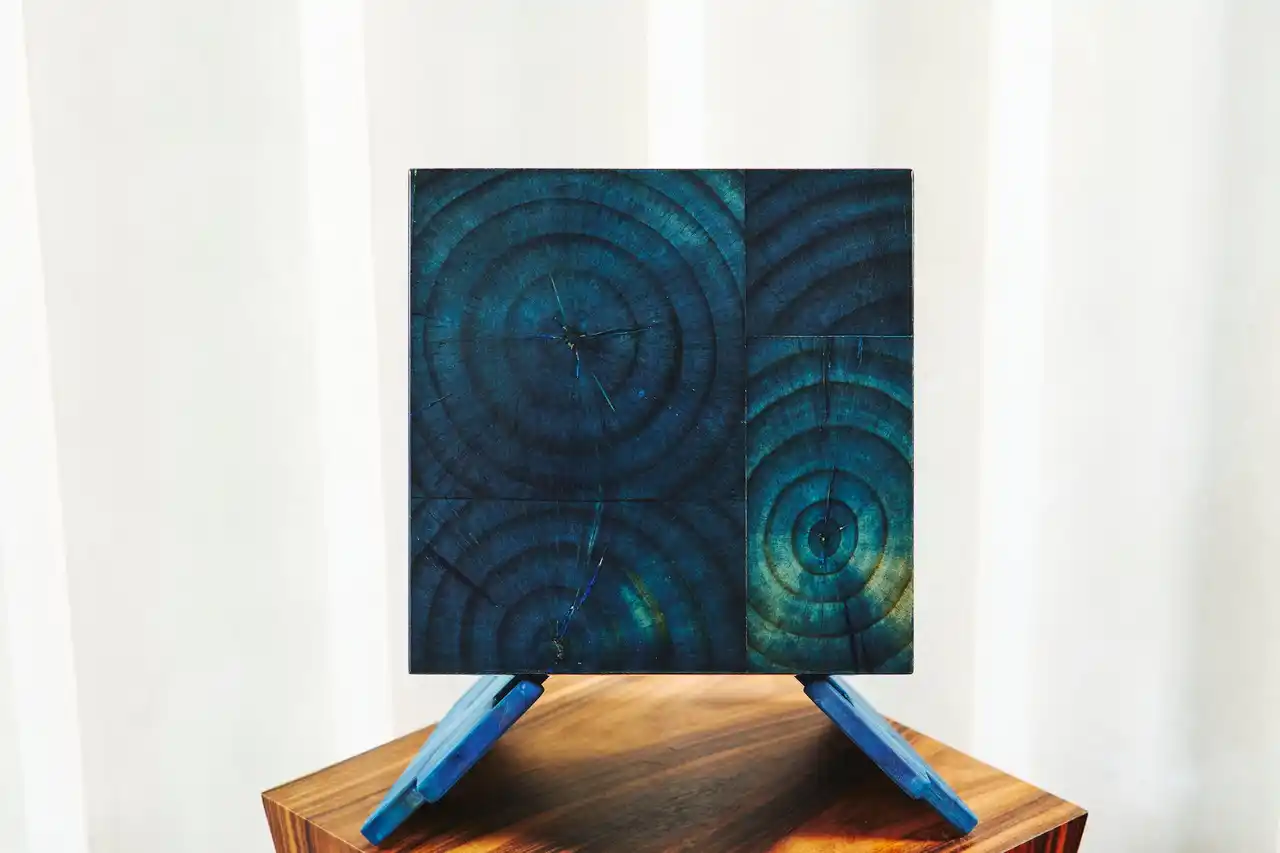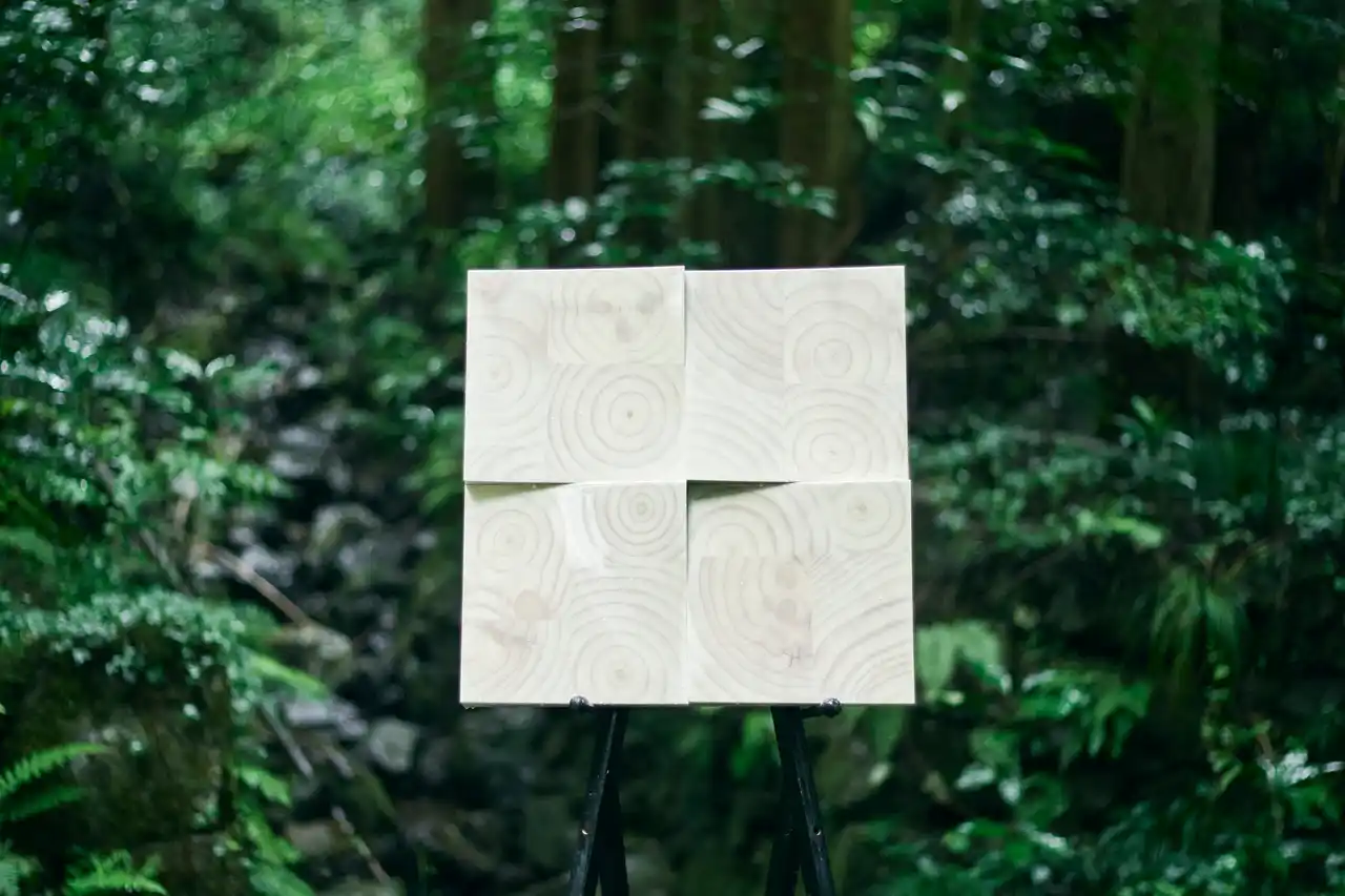 「Radial Square」は、ラジアータパインの年輪を0.25mmの薄突板としてスライスし、立体的に構成した壁掛けアートパネルです。天然木が持つ時間の層(年輪)をそのまま視覚化し、素材の美しさを現代アートとして再構成しています。 |