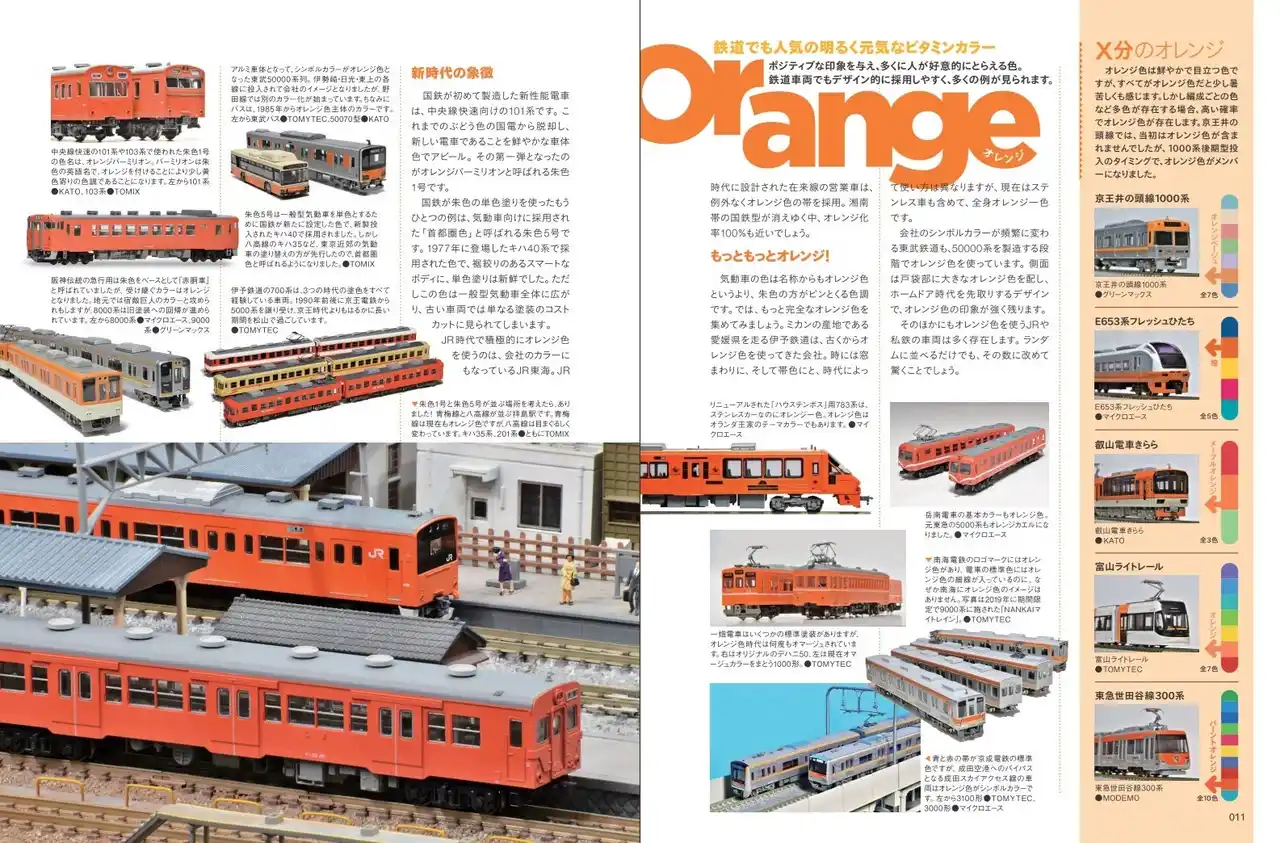 特集は「Nゲージ 色いろいろ」。同じ色の模型を集めてみると、面白い誌面になりました。 |