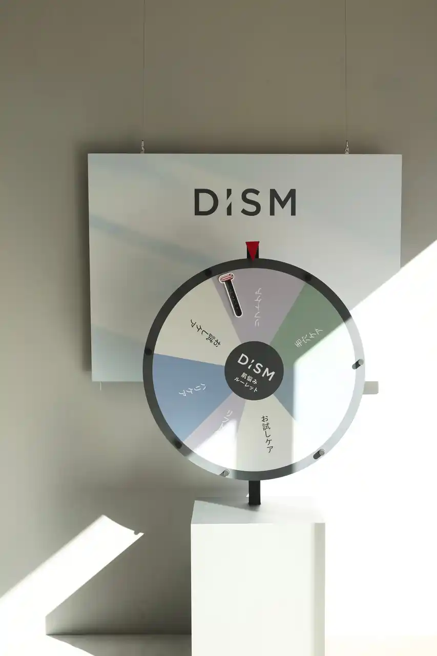 今回、「美容を愉しむきっかけを創りたい」、「DISMのこだわりを深く知っていただく機会をつくりたい」という想いから、性別を問わず多くの方にご来場いただけるポップアップストアを開催しました。洗練された「研究所」をイメージした空間で、DISMの肌へのこだわりを体感いただける場をご用意しました。 |