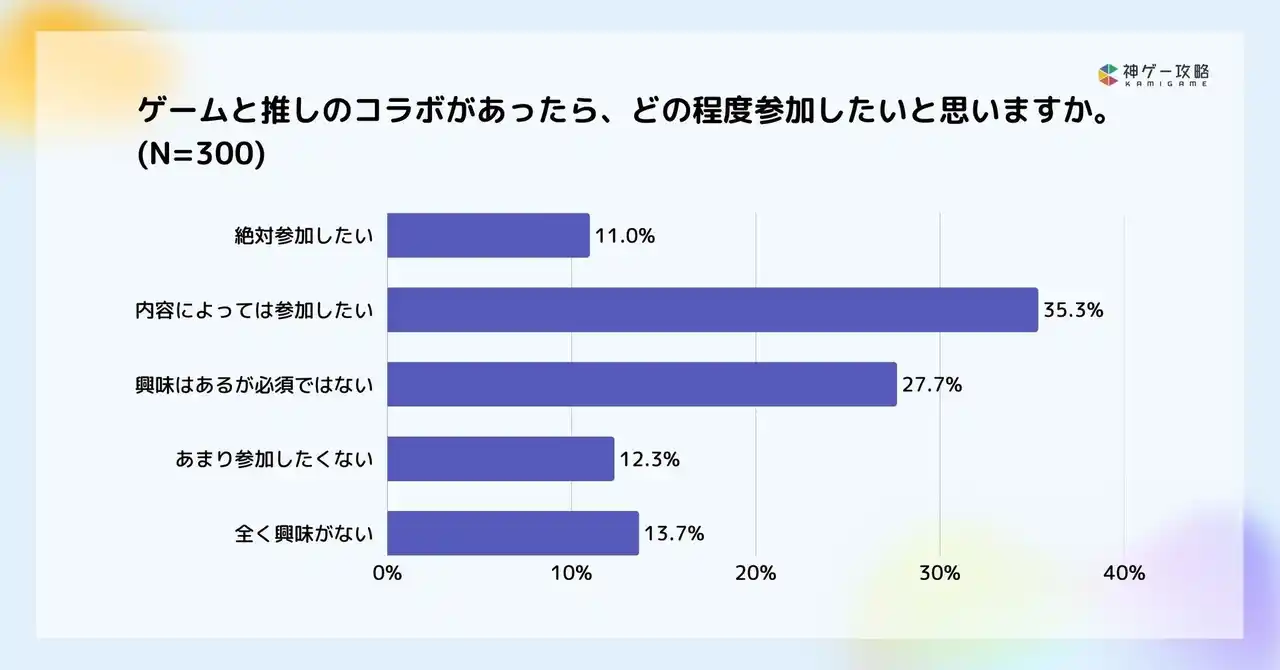 ゲームと推しのコラボへの参加意欲は半数以下 |