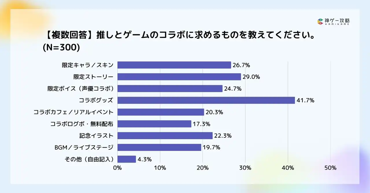 ・ゲームと推しのコラボに求めるものはコラボグッズが41.7%で最多 |