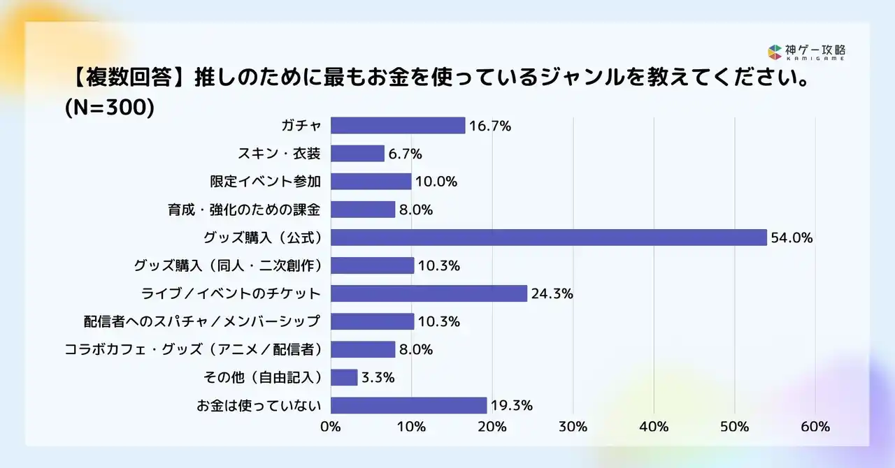 推しに最もお金を使っているジャンルは「公式グッズ購入」 |