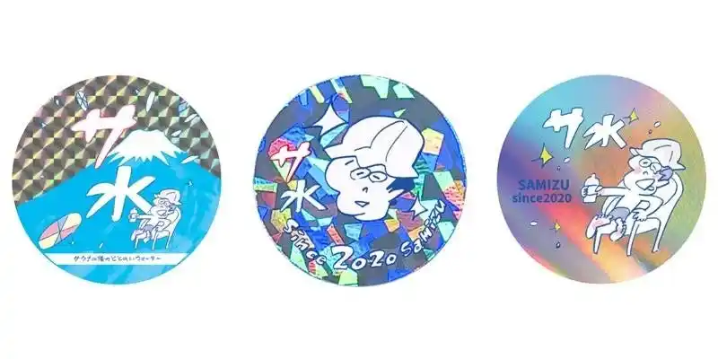・ステッカーはタナカカツキさんが描いた『サ水』ボトルデザインや商品ロゴをモチーフにした全3種があり、ランダムでのお渡しとなります。 |