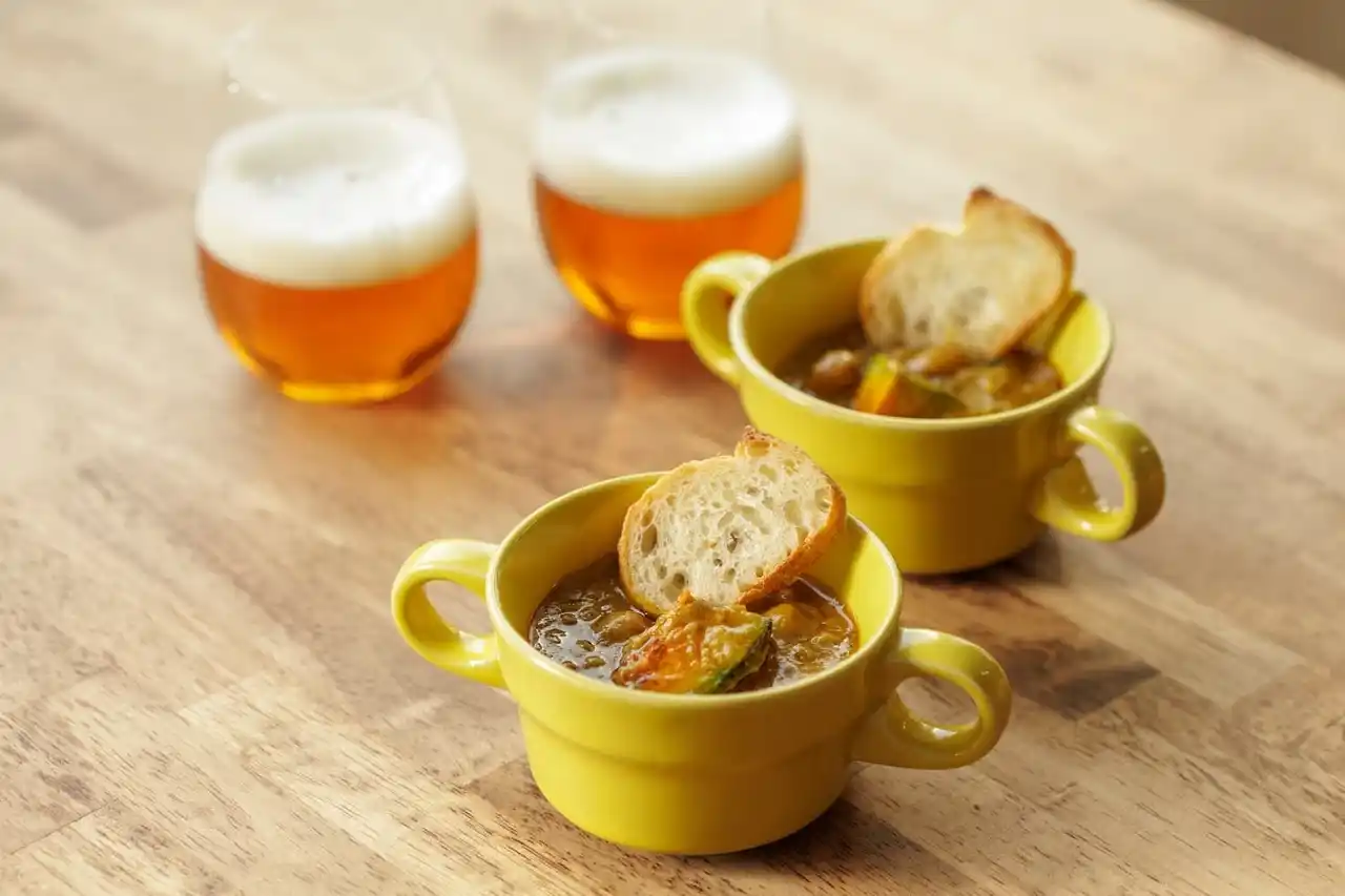 一作目となる今回のカレーは、ふっくらと炊いた2種類の大豆が主役。大豆の自然な甘みを活かすため、白みそを加えまろやかに仕上げました。ひと口食べると大豆の旨みが広がり、そのあとにじわりとスパイスの余韻が残ります。五穀米やバゲットと一緒に食べるのもおすすめです。 |