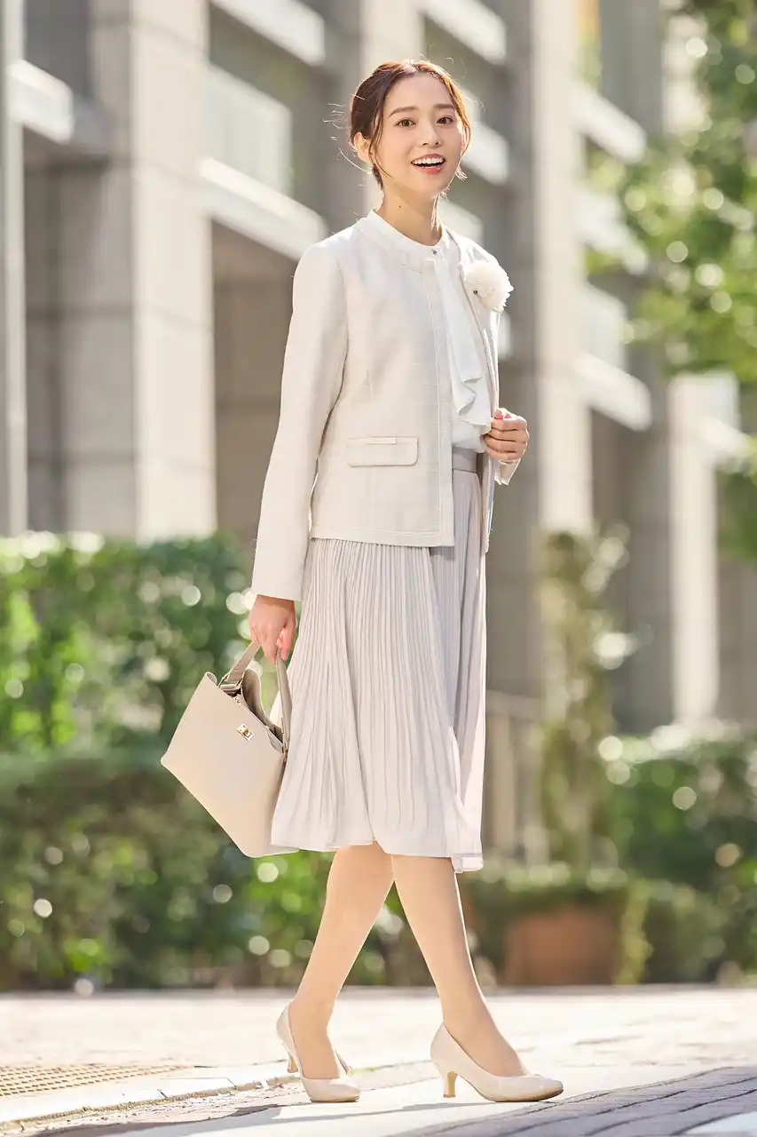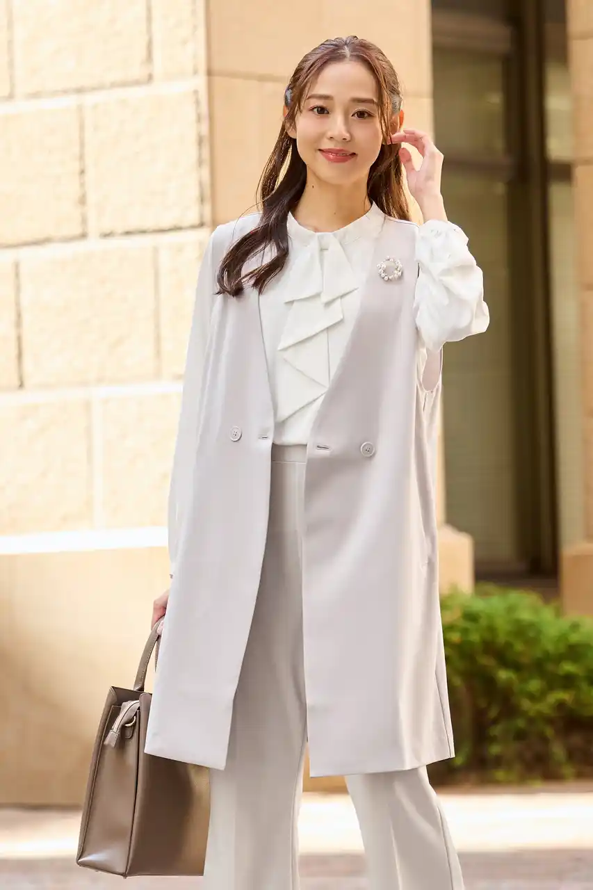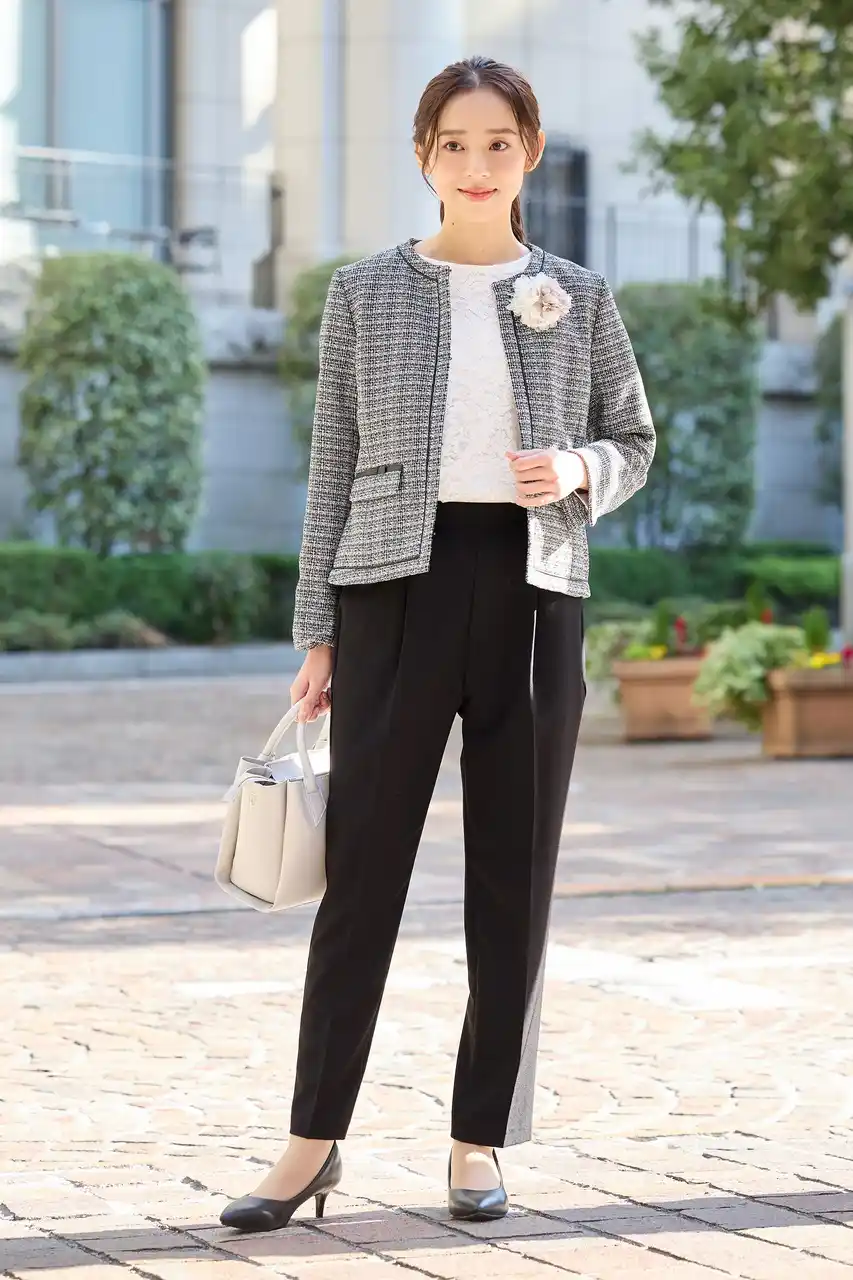 一部のアイテムには、伸びがよくシワになりにくい素材や、家庭で洗えるウォッシャブル仕様などを取り入れています。ジャケットはノーカラーやテーラード、ツイード調などのデザインから選べるため、自分の好みや体型、シーンに合わせて組み合わせがしやすいのもポイントです。 |