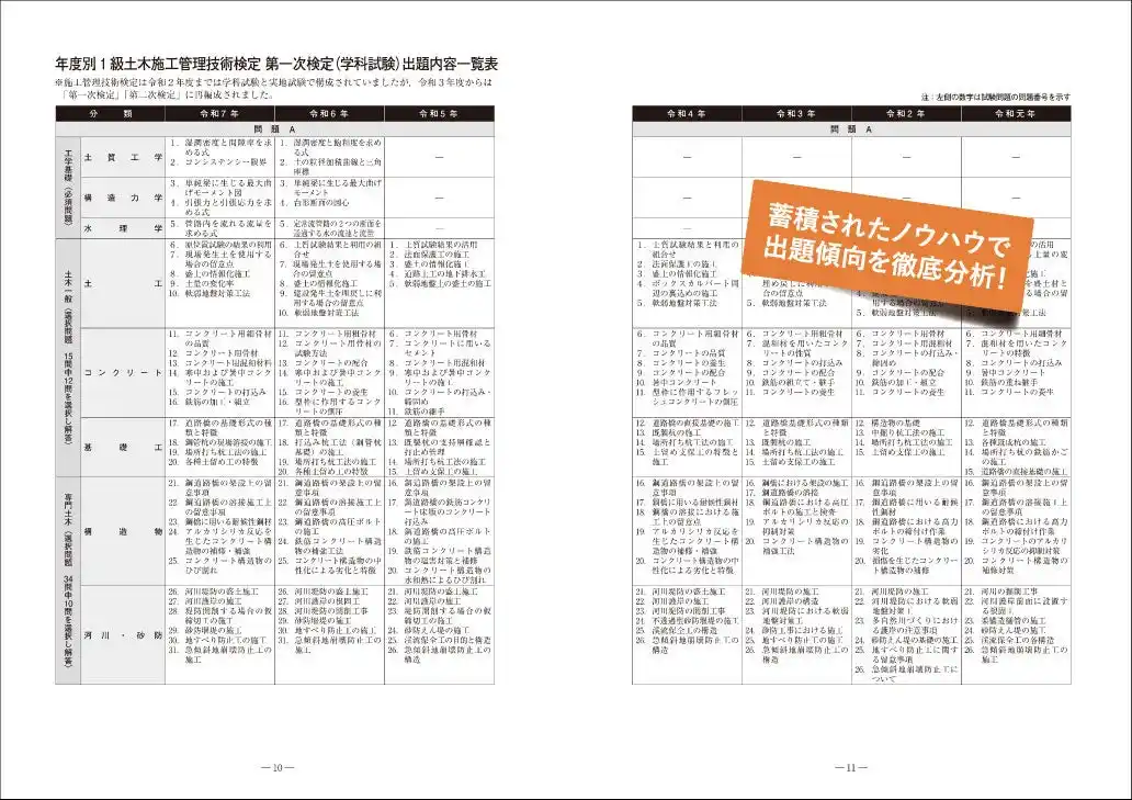 出題傾向がよくわかる出題内容一覧表 |