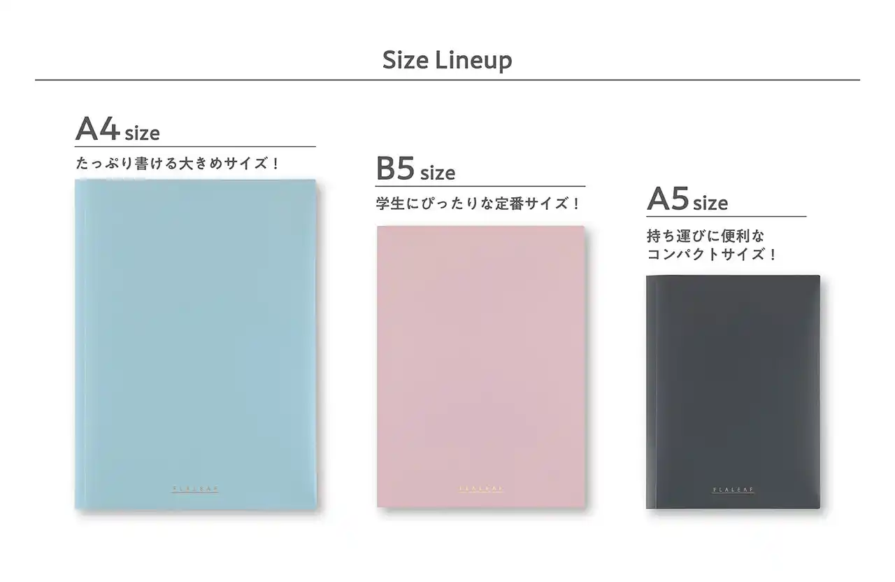 この度お客様からご要望の声を多くいただきました、たっぷり書ける大きめサイズ「A4サイズ」、持ち運びに便利なコンパクトサイズ「A5サイズ」を新発売いたします。フラリーフの使い心地はそのまま用途やカバンのサイズに合わせて選べるようになりました。 |