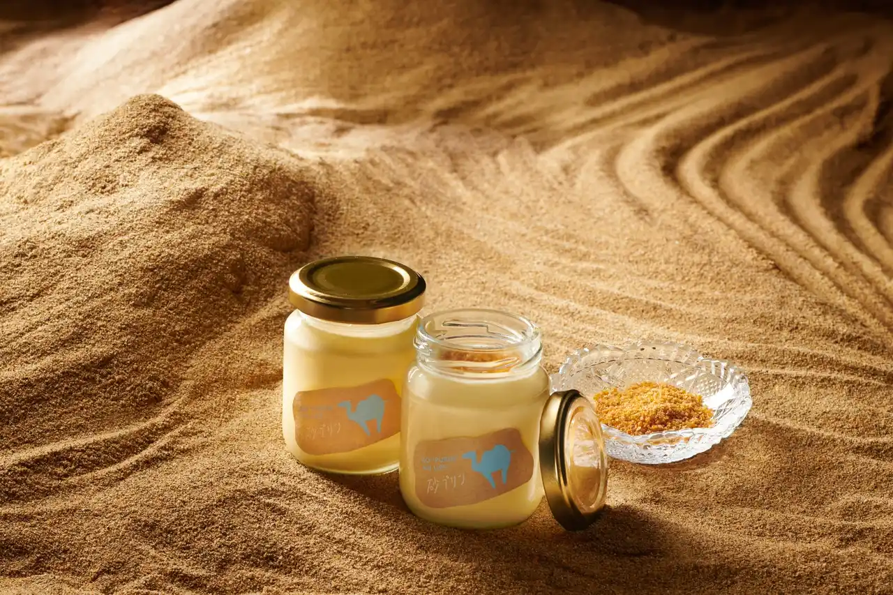 鳥取砂丘をコンセプトに、カラメルを粉末にした付属の“砂”をかけて食べる新感覚のプリンです。じゃりっとした食感が癖になります。 |