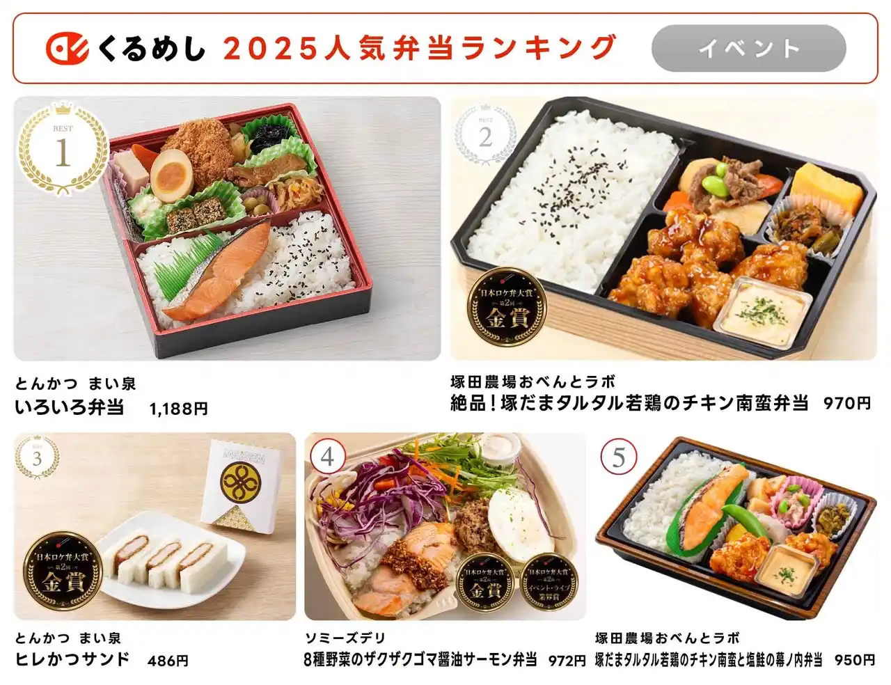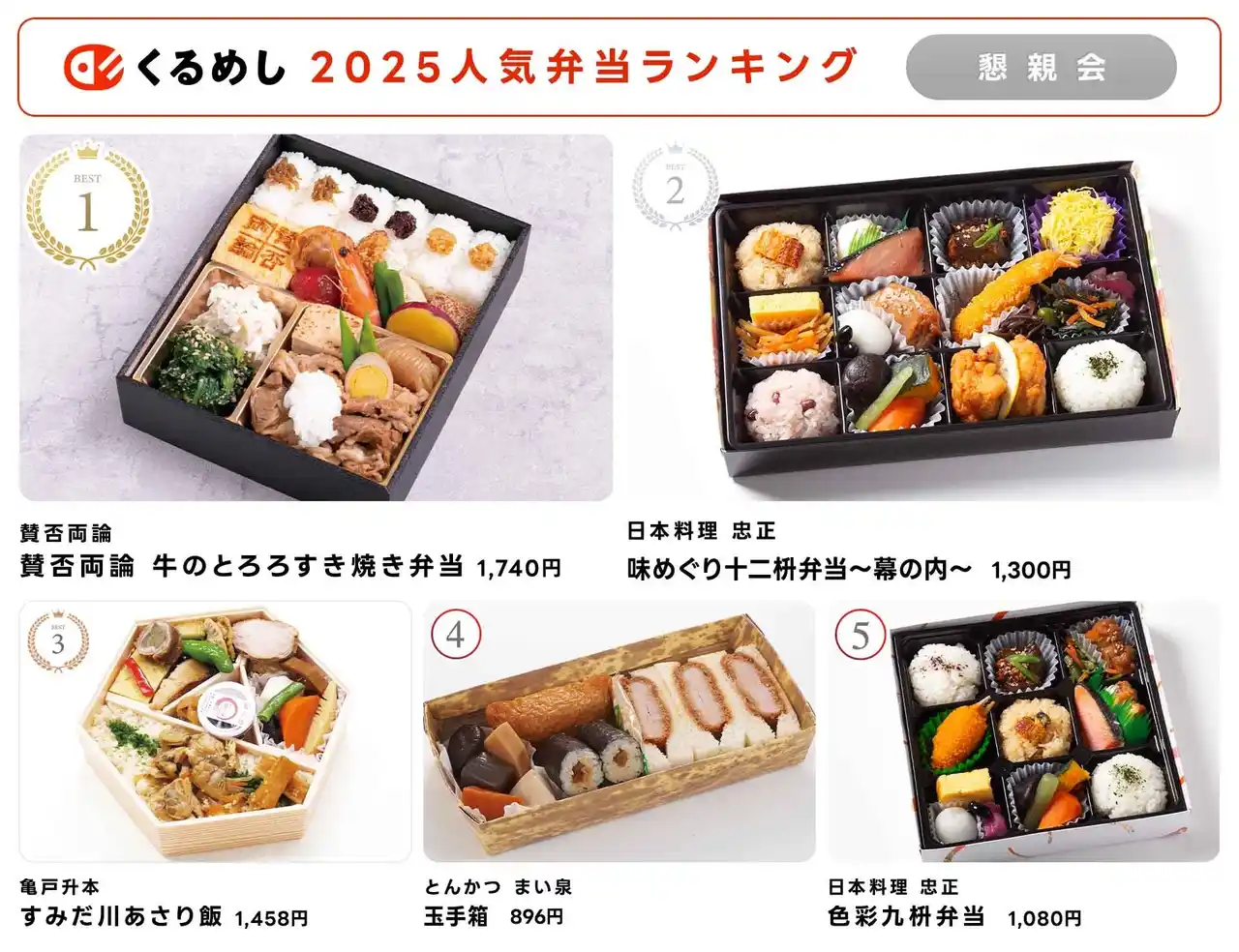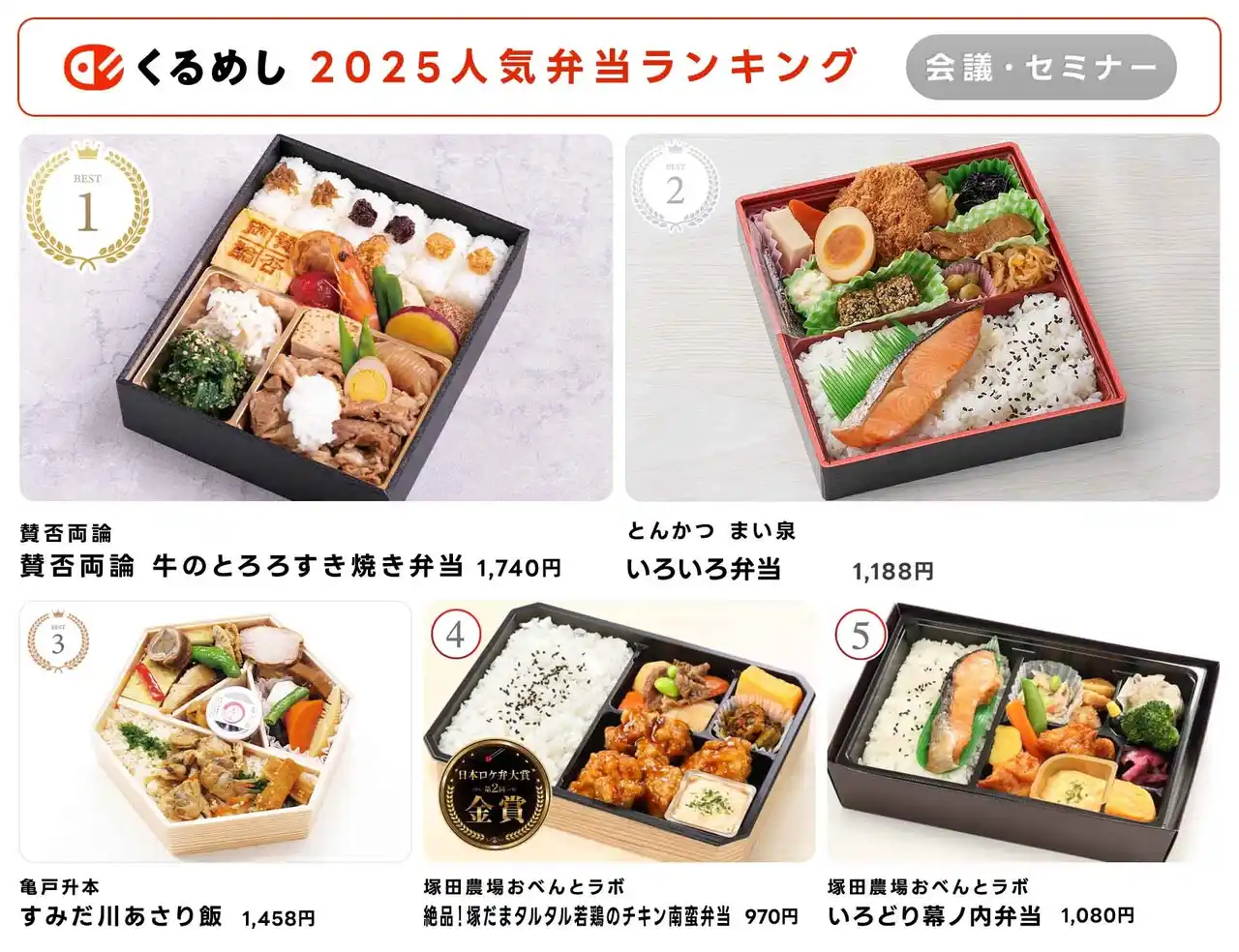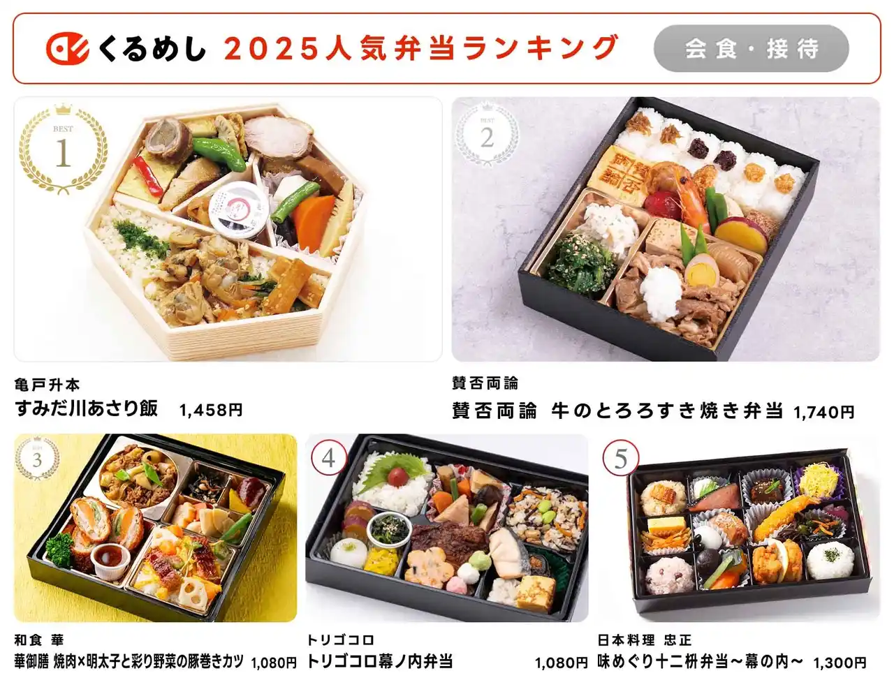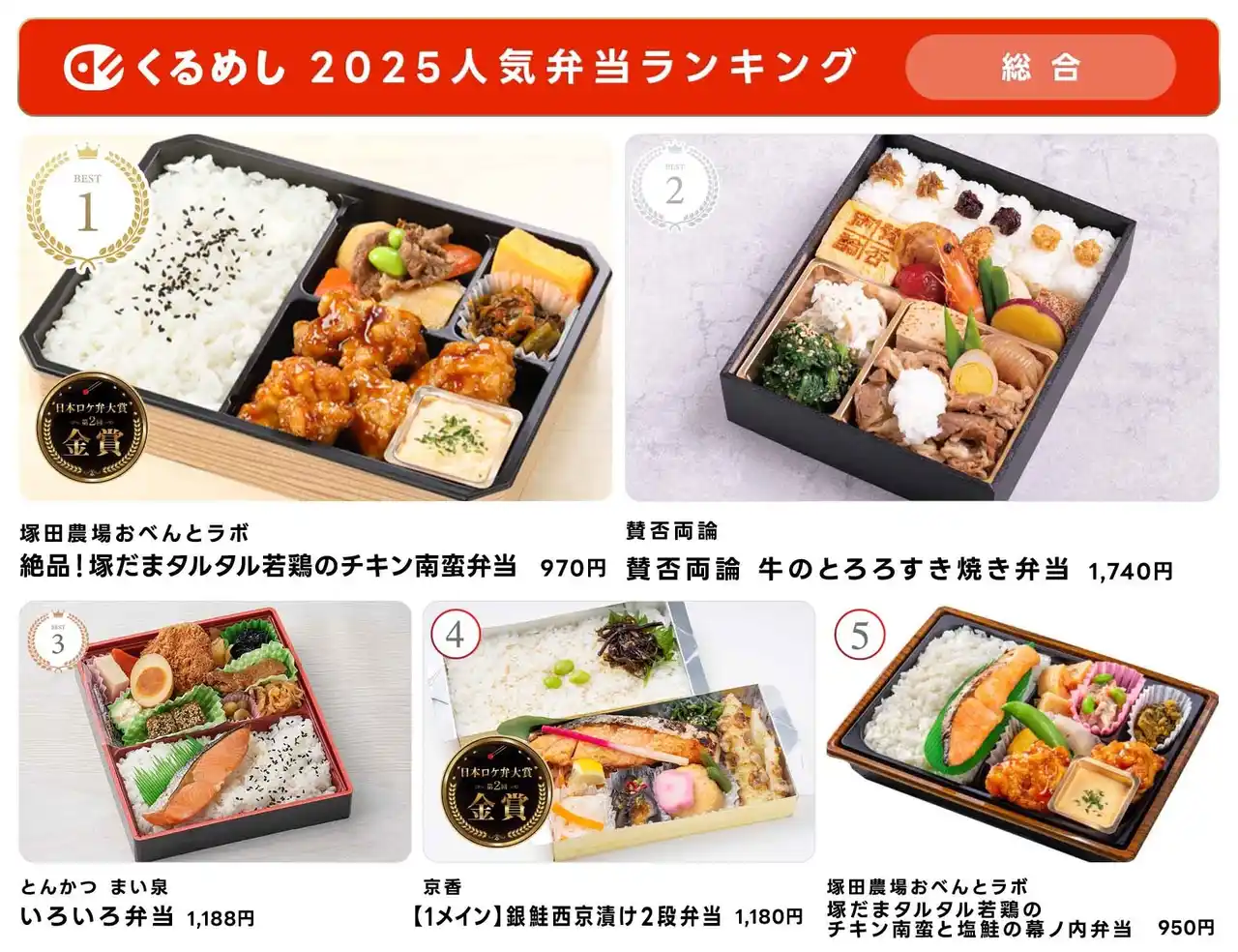 国内最大級の法人向け弁当デリバリーサービス「くるめし弁当」(運営:株式会社くるめし、本社:東京都渋谷区、代表取締役:小林 篤昌)は、2025年1月1日~2025年10月31日の売上データをもとに集計した「人気弁当ランキング2025」を発表します。売れ筋に基づく「2025 総合ランキング」、39,000件以上の口コミから利用シーンを分析し集計した「2025 利用シーン別ランキング」をご紹介します。 |