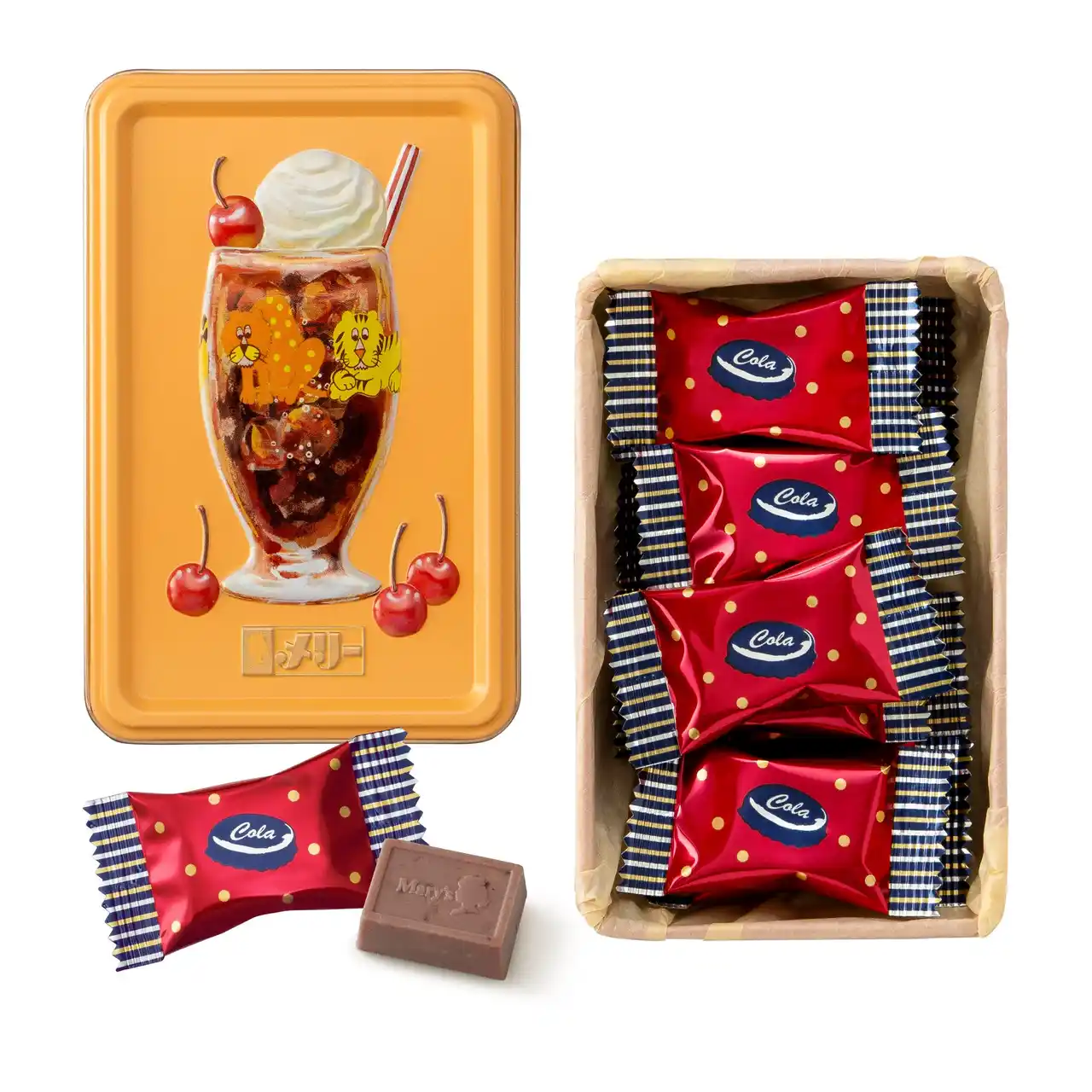 チョコレートをはじめとする贈答用菓子の製造、販売を手掛ける株式会社メリーチョコレートカムパニー(本社・東京都大田区、社長・小屋松 儀晃(こやまつ よしてる))から、2026年1月より順次、一部百貨店のバレンタイン催事会場にて「はじけるキャンディチョコレート。×アデリアレトロ」のコラボ商品4種類を販売いたします。 |