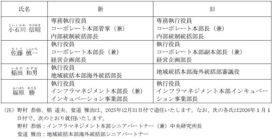 取締役体制(2026年3月26日付)、執行役員体制(2026年1月1日付)、執行役員体制(2026年4月1日付)については、以下のPDFよりご覧ください。 |