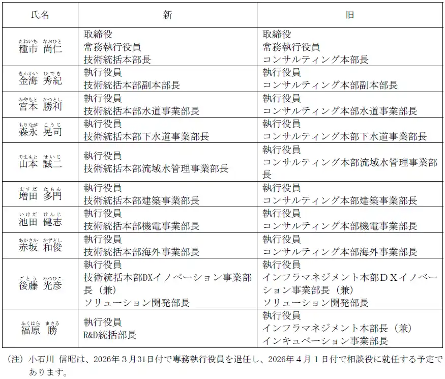 インフラマネジメント本部のDXイノベーション事業部をコンサルティング本部に統合し、「技術統括本部」として再編する。 |