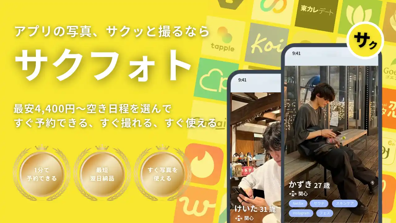 株式会社アルファブル(本社:東京都中野区、代表取締役:香美惇、以下「アルファブル」)が運営するマッチングアプリ専用プロフィール写真撮影サービス「サクフォト」は、このたび全国9エリア(札幌・仙台・東京・横浜・千葉・名古屋・大阪・広島・福岡)にて正式にサービスをリリースいたしました。