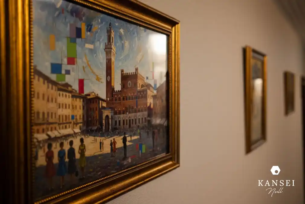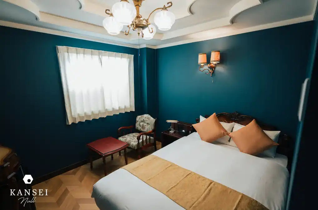 KANSEI null 佐賀がめざしたのは、視覚を“癒しの入口”として再認識することです。ただ美しい景色を見せるのではなく、自分の目で世界をゆっくり受け取る時間を提供したいと考えました。大切に使われてきたアンティーク家具や絵画、レンガ造りの外観に、1960年代ヨーロッパのホテル文化を重ね合わせ、 各客室の壁紙・色彩・照明・細部を世界の都市の記憶とリンクさせています。 廊下や階段は“ギャラリーのような静けさ”をイメージし、光の陰影や額縁の配置が、ふと立ち止まりたくなる視覚体験を生み出します。 |