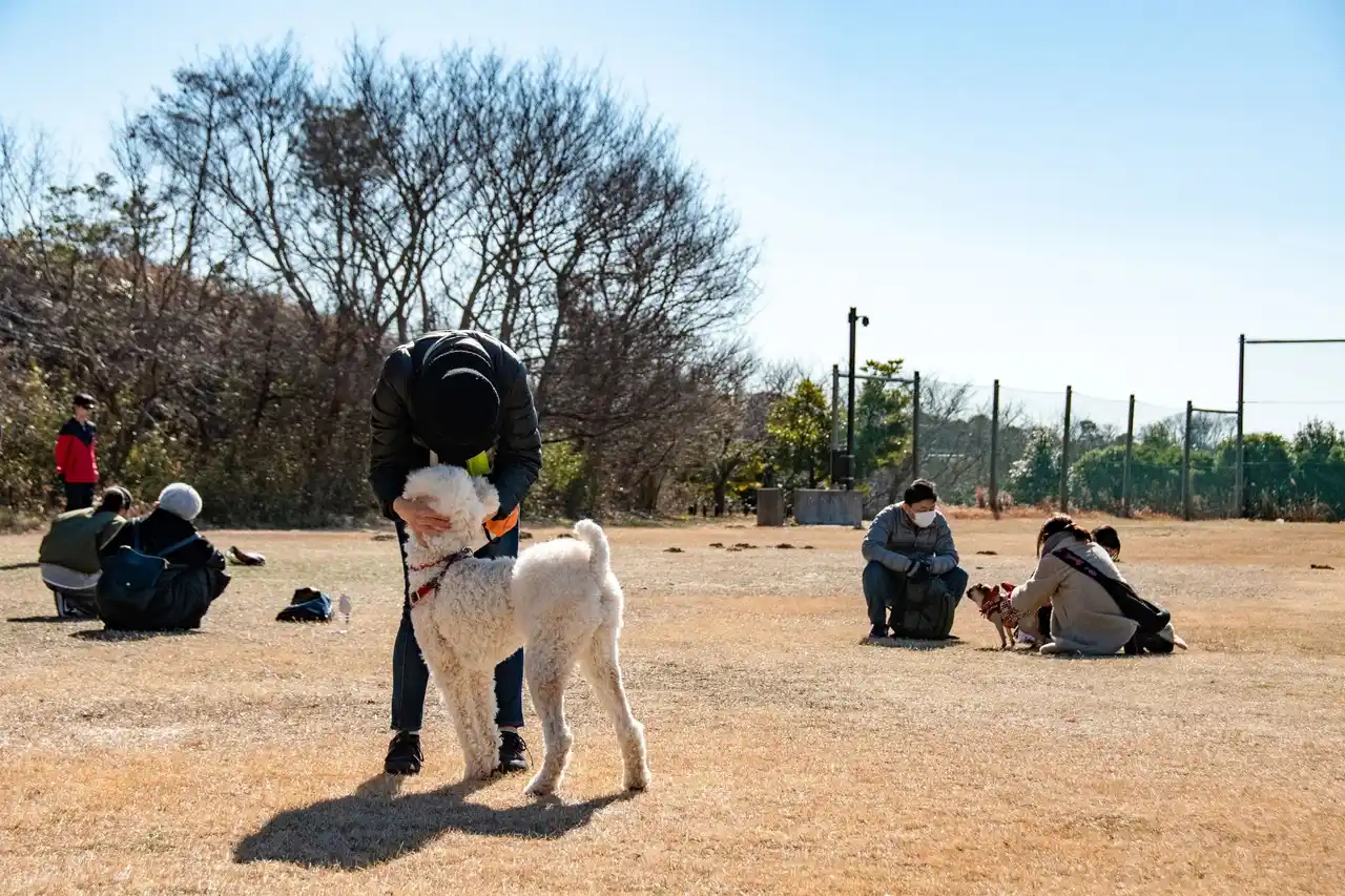 特設ドッグランは 「大型犬エリア」「中型犬エリア」「小型犬エリア」「フリーエリア」 の4つに分かれ、愛犬の体格に合わせて安心してご利用いただけます。どのエリアもゆとりあるスペースで、ワンちゃんが思いきり走り回ったり、ほかの犬との交流など自由に楽しめます。また、近くにはベンチが設置されているため、飼い主の皆さまはゆったりと休憩しながら、愛犬の様子を見守ることができます。 |