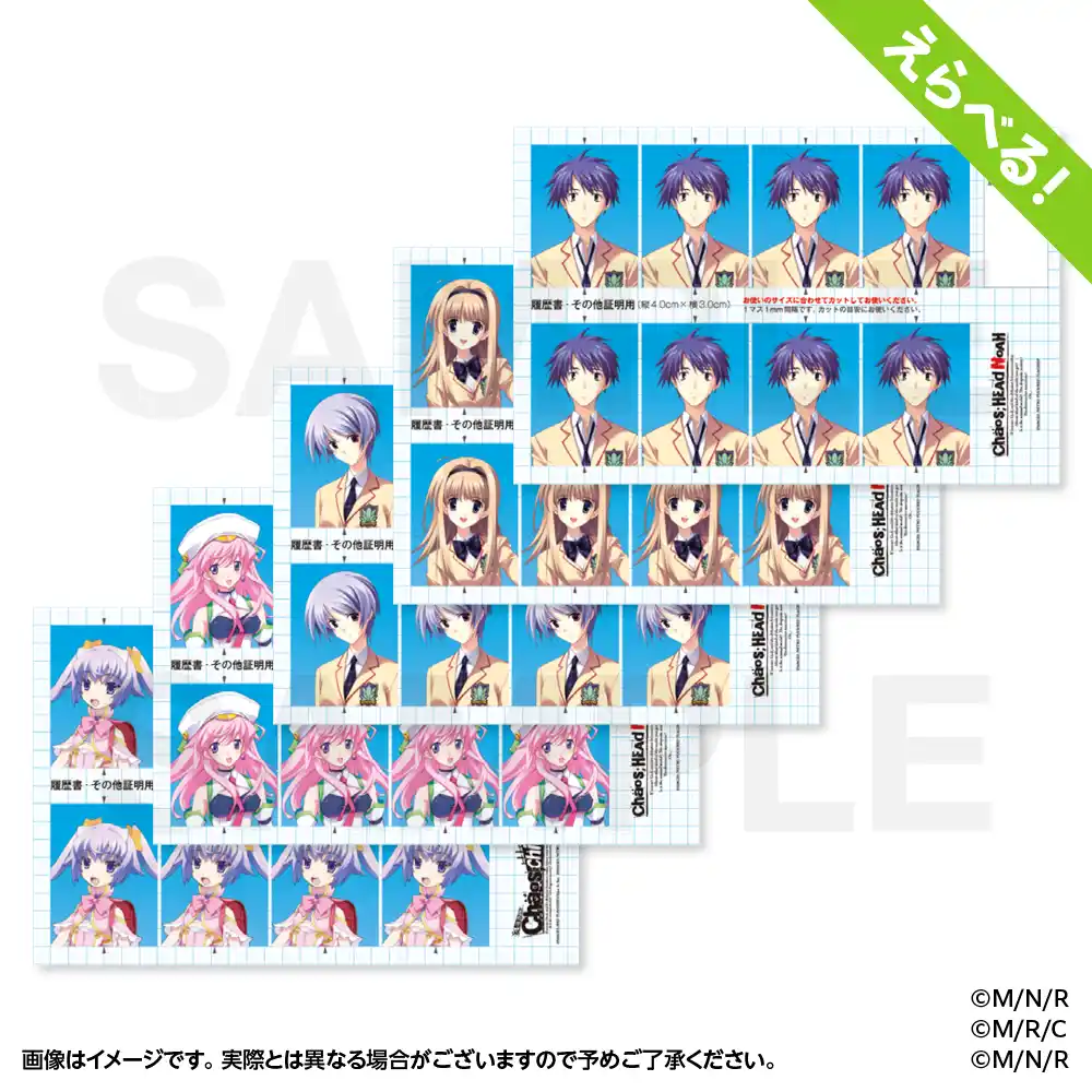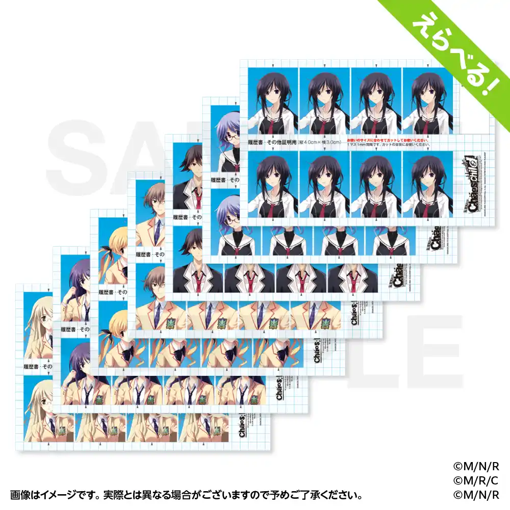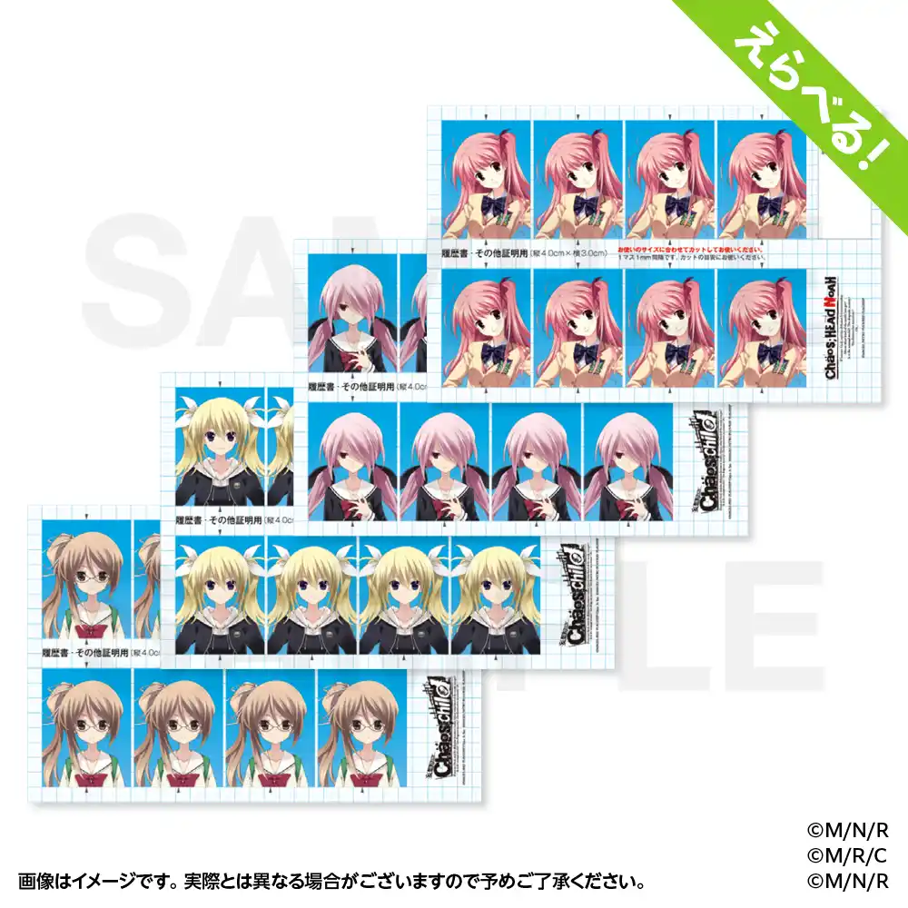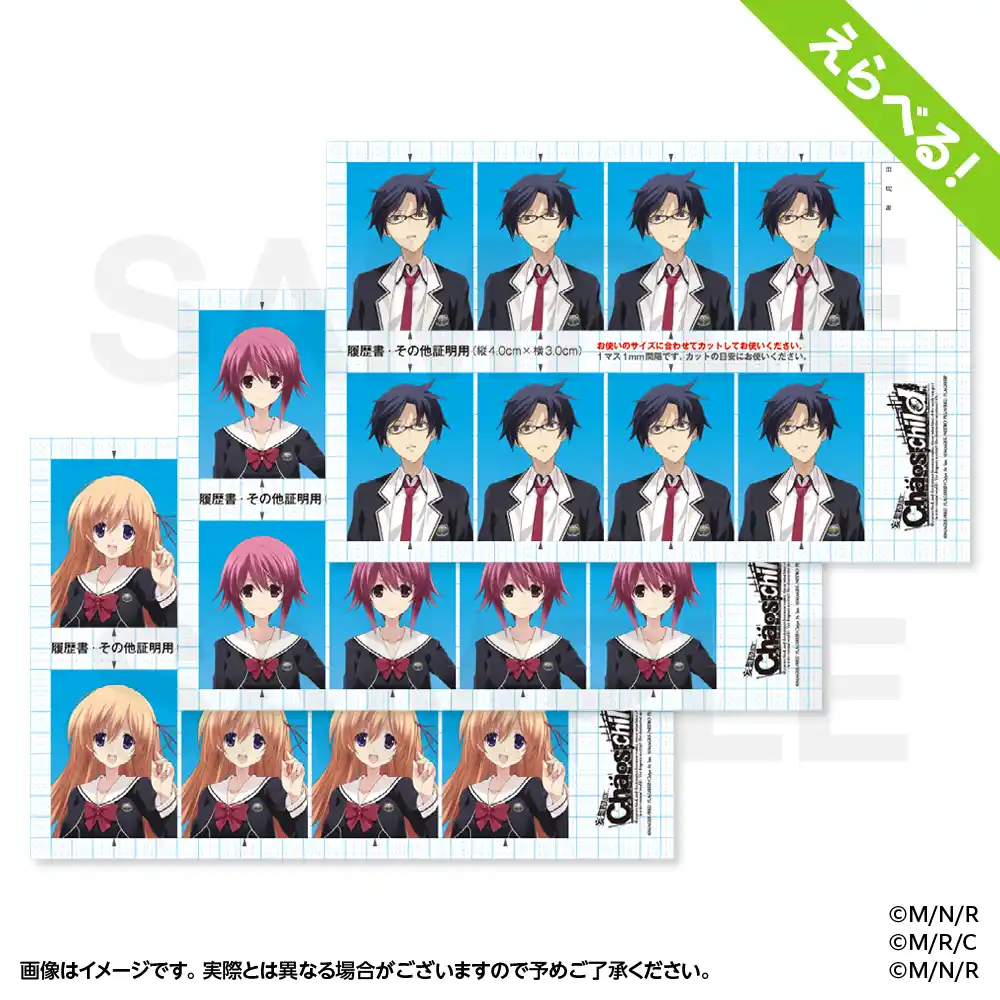 「CHAOS;HEAD NOAH」「CHAOS;CHILD」のキャラクター達を使った、証明写真風イラストカードです。 |