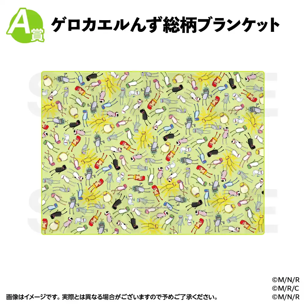 「CHAOS;HEAD」の影の人気No.1キャラクター!?のゲロカエルんたちを総柄にしたブランケットです。 |