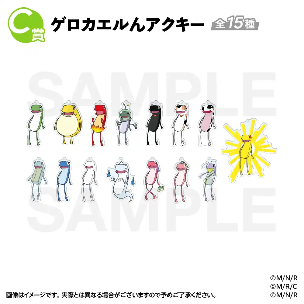 角度によってキラキラと輝く加工が施された「プリズムアクリルパネル」や、2作品のマスコット的キャラクター「ゲロカエルん」のオリジナルグッズなど、他では手に入らないアイテムたちがラインナップ! |