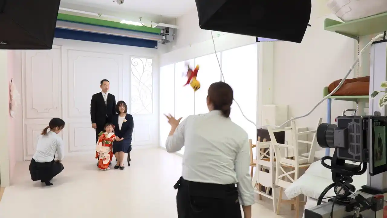 | 1年のうちで最も忙しい、七五三シーズンの11月中旬にスタジオアリスを訪れた取材班。そこでは1万人以上を撮影したというカメラマンの中川さんが子どもの笑顔を引き出す驚きのテクニックを披露。その一つが「アクロバティックな曲芸技」。 | |||