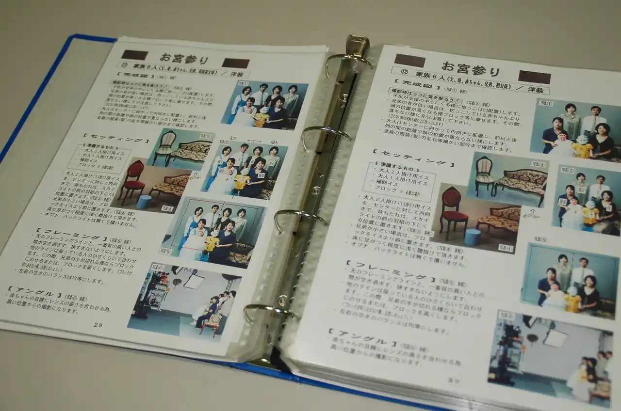 | カメラ経験のなかった牧野社長。カメラマンの下で修行するも、「シャッター、一押し10年」と言われる業界に違和感を覚えた。そして、自ら技術習得時間を短縮させるためのマニュアルを作成。 | |||