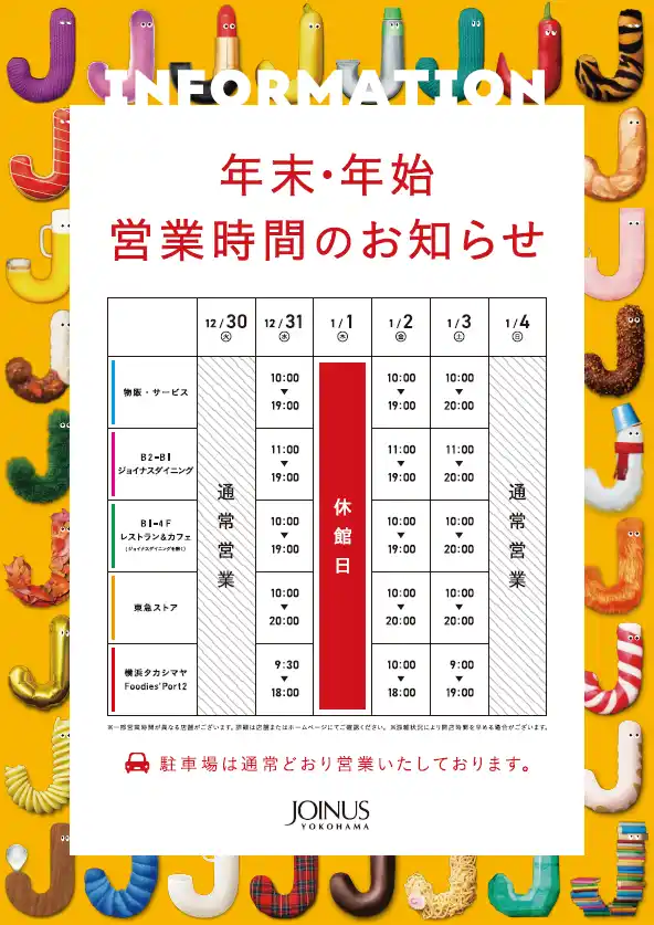 ■ジョイナス 年末年始 営業時間 |