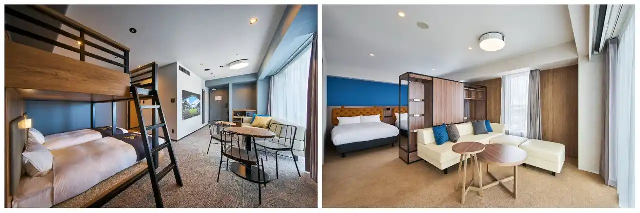 | 全21室の客室にはすべてダブルベッド(ソファベッドを除く)を設置し、最大7名まで宿泊可能なお部屋もご用意。ご家族やグループなど多人数での滞在に対応するゆとりのある空間設計としました。京都観光や長期滞在に快適な滞在体験を提供します。 | ||||||||||||||||