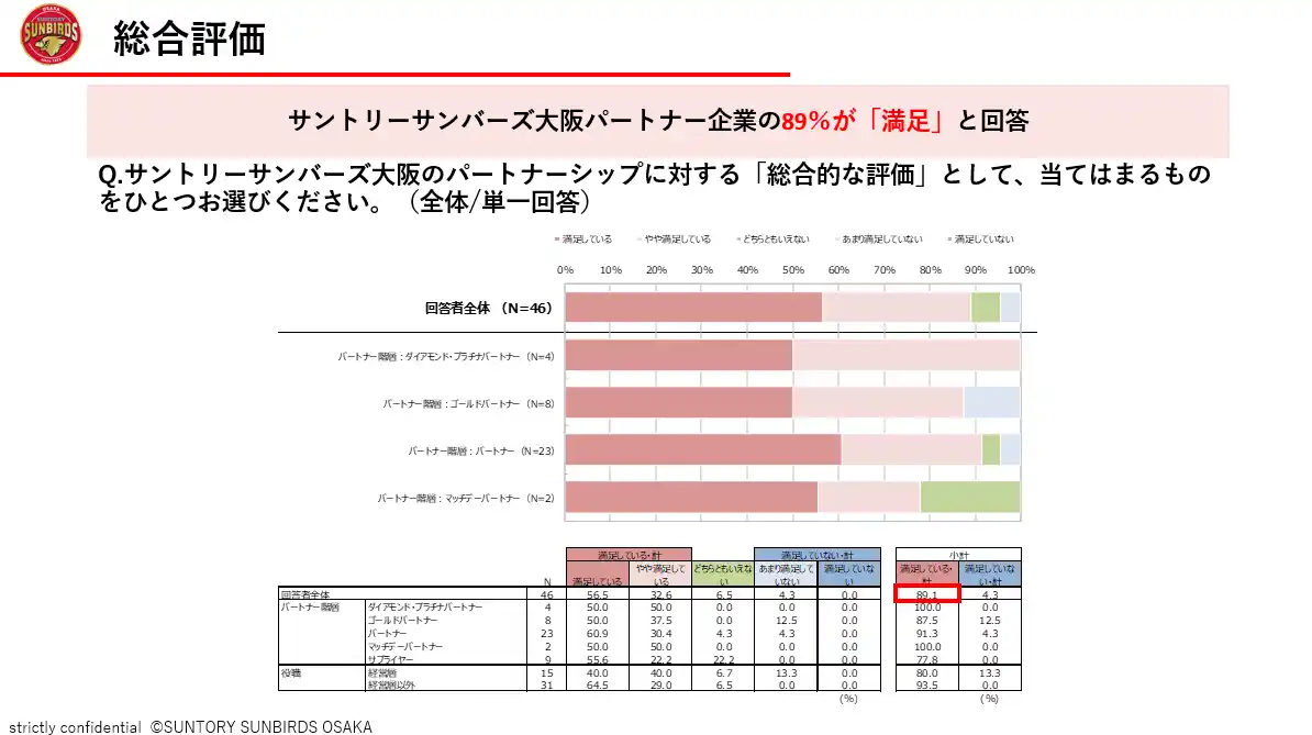 ■パートナー企業様の89%が「満足」と回答、 サントリーサンバーズ大阪のパートナーシップ |