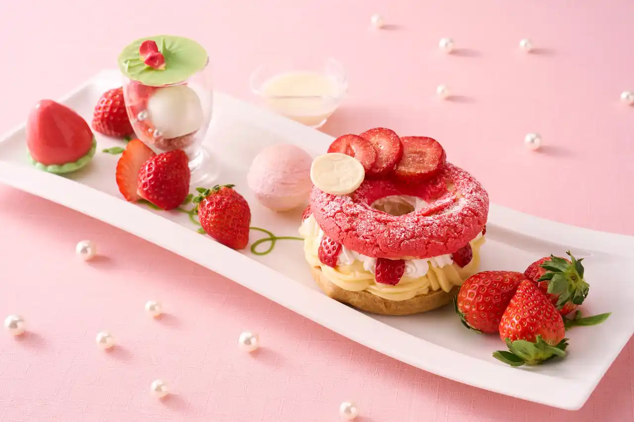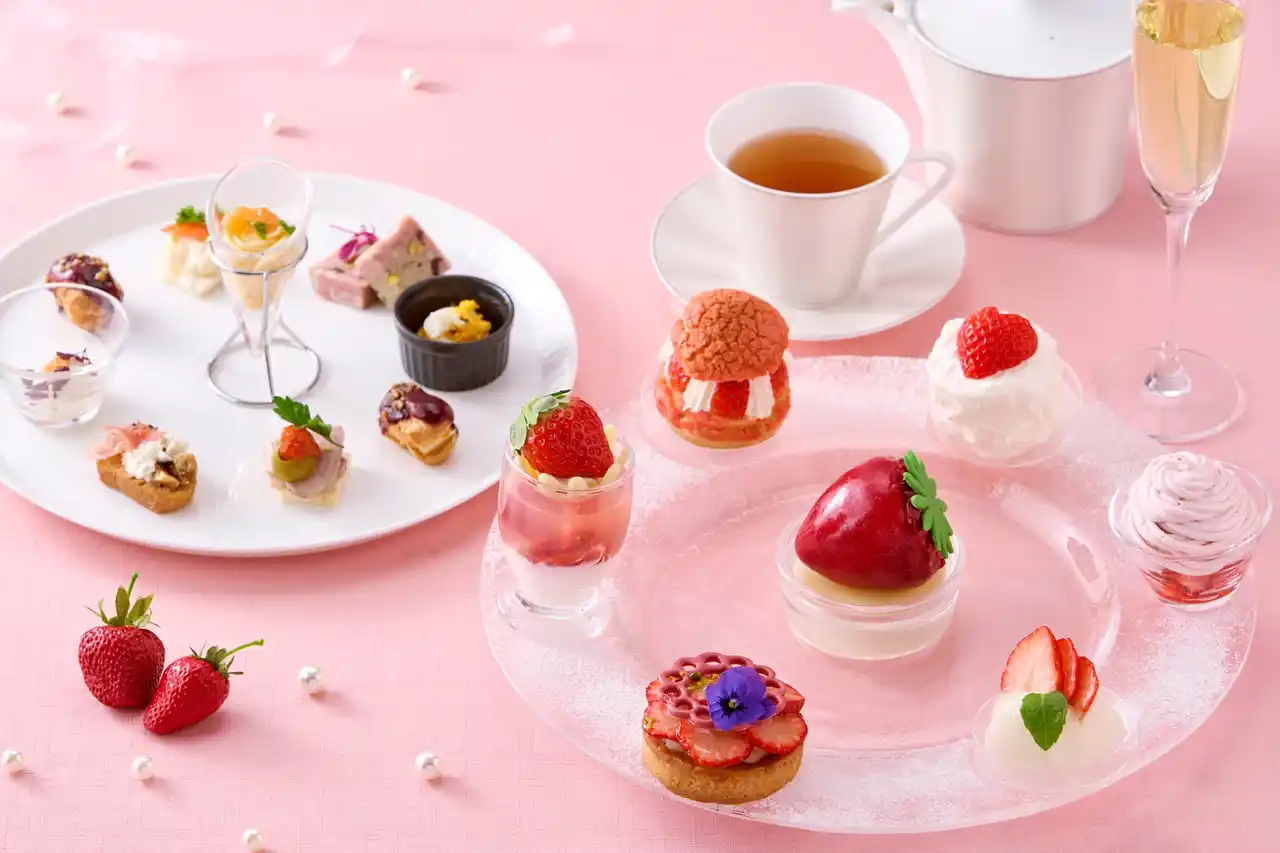 苺のヴェリーヌや苺タルト、苺モンブランなど華やかなスイーツがプレートを彩り、さらにセットドリンクには苺のフレーバーティー2種も新登場。苺尽くしの特別なひとときをお届けします。 |