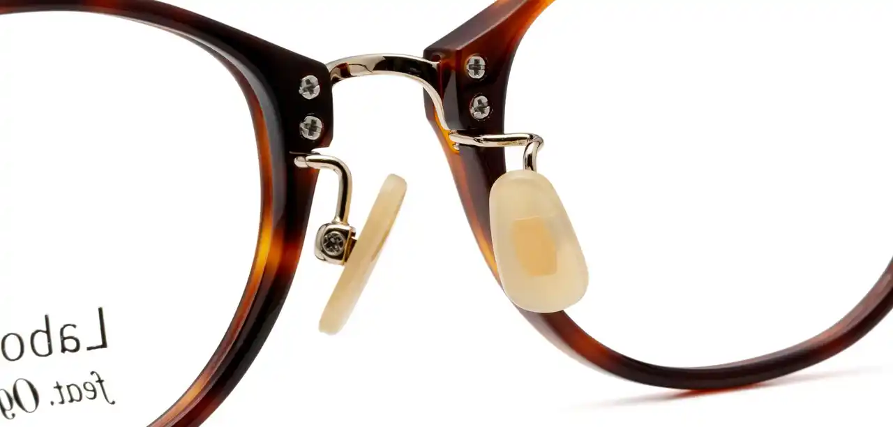ゴールドパール色の鼻パッドは、イエベ・ブルベを問わず肌になじみ目立ちにくく、クラシカルな雰囲気も兼ね備えています。さらに、クリングス付きでかけ心地を細かく調整できるため、長時間の装用も快適です。 |