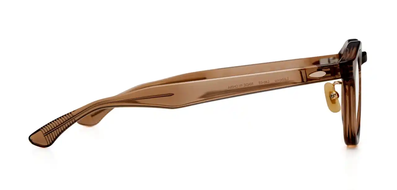 強度数のレンズは厚みが出やすく、横から見た時にレンズがはみ出して見えることがあります。そのため、リム側面は厚みを自然にカバーできる太さにしつつ、正面からはスッキリ見えるよう細めにデザインしています。(Lab-04) |