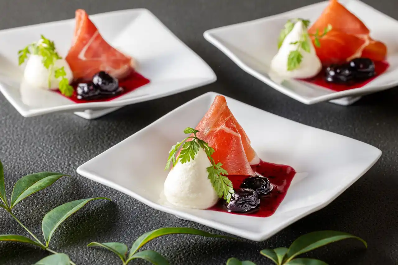 ハスカップとマスカルポーネと生ハムのアンサンブル |