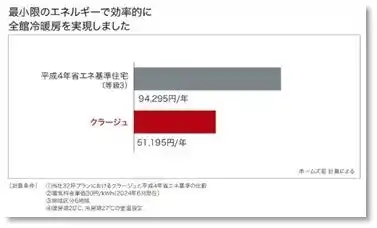▲省エネ基準住宅とクラージュの冷暖房費比較 |