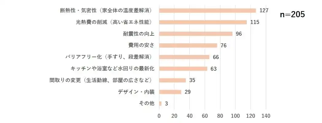 Q7. もしご実家をリフォームや改修、建て替えをする場合、あなたはご両親のために、何を優先したいですか?(複数選択可) n=205