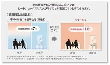 ▲省エネ基準住宅とクラージュの部屋間温度差比較 |