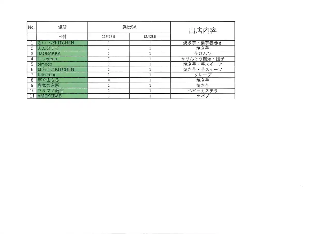 東海地方を中心に延べ35万人を動員しているあの芋フェス!の年内最後を飾る2025年12月27日~28日「第1回芋フェス!IN浜松SA(下り)」の出店者が本日発表された。 |