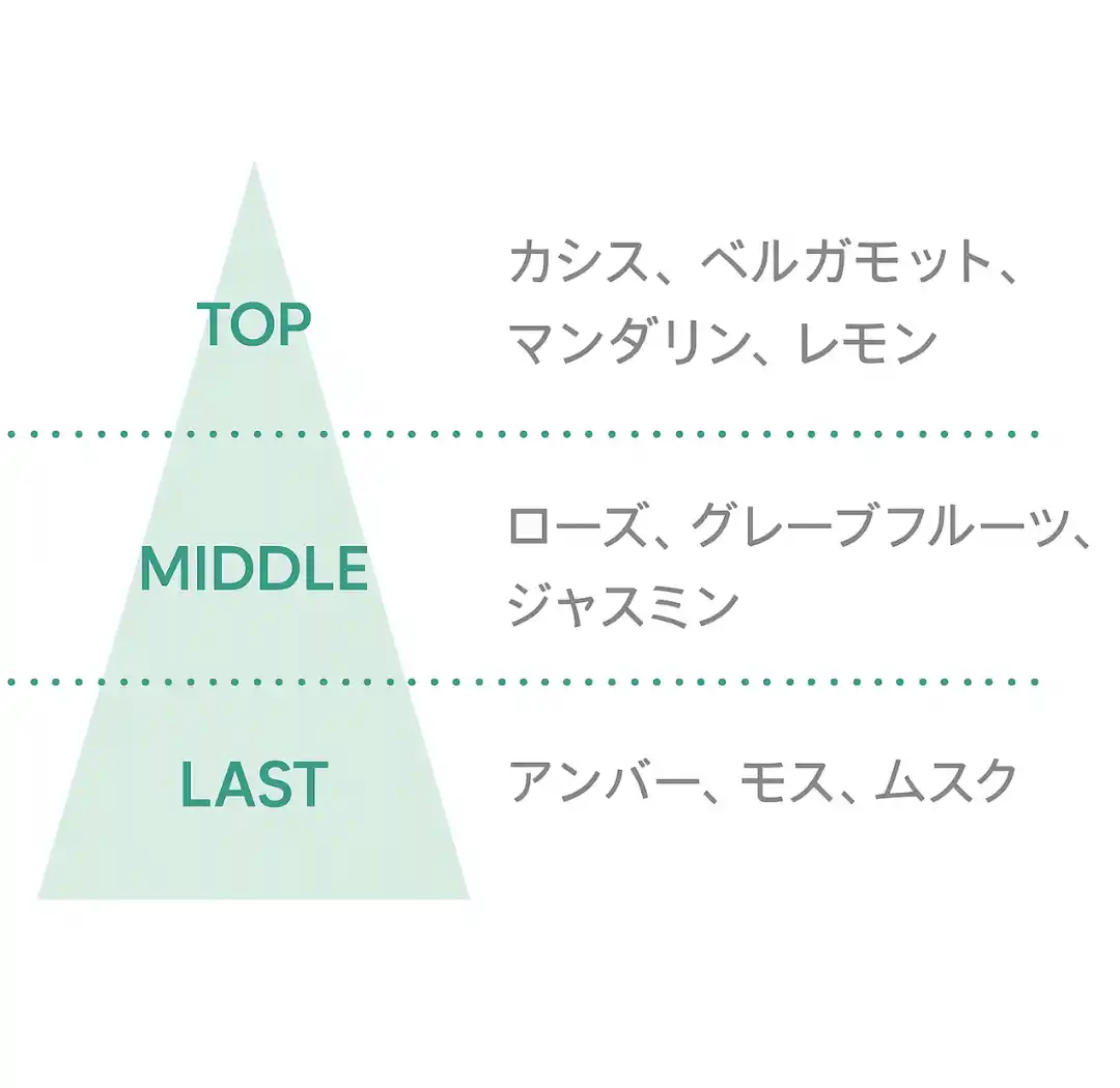 軽やかでフレッシュなベルガモットに、落ち着きのあるモスを組み合わせ、アクセントとしてすっきりとしたレモン精油を配合。爽やかさの中に深みを感じさせる香調は、リビングや玄関、ワークスペースなど、さまざまな空間に心地よくなじみます。 |