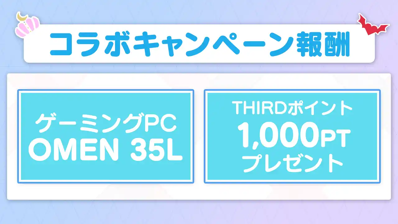 本コラボレーションを記念し、二人の熱戦を応援してくれた視聴者の方の中から抽選で、高性能ゲーミングPC「OMEN」が当たるプレゼントキャンペーンを開催いたします。 |
