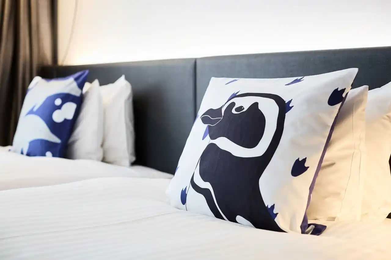 SEA)」をコンセプトに、海のない梅田に突如現れた海をイメージし、学生たちの自由な発想で客室をデザイン。シャチやイルカ、ペンギンなどをはじめとする、神戸須磨シーワールドで展示している生きものの魅力を表現いたしました。客室内にはネオンや海中ジオラマなどのアート作品を展開するほか、ポストカードやステッカーなど、ご宿泊の記念にお持ち帰りいただけるアイテムも多数ご用意いたしました。