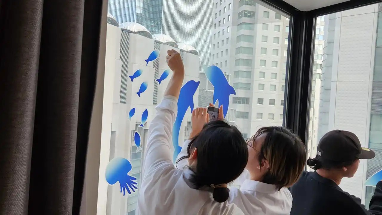 また、アートルーム以外のお部屋にご宿泊のお客様にもお楽しみいただける「ARフォト」では、シャチやクラゲと一緒に写真を撮ることができます。このアートルームは、単なる宿泊ではなく、学生の斬新なアイデアとアートに触れる非日常的な体験を提供いたします。都会にいながらにして、幻想的な海の生きものたちに囲まれる特別な一夜を、ぜひご体感ください。 |