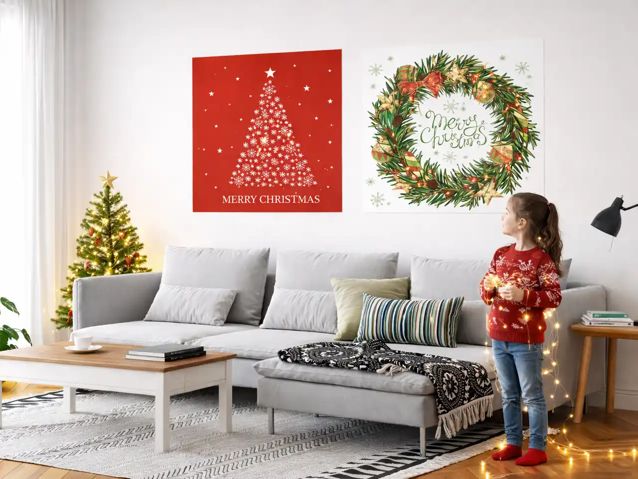 ご自宅のリビングや子ども部屋にはかわいらしいサンタやトナカイのデザイン、カフェやショップには洗練されたシンプルデザインなど、空間の目的やテイストに合わせてお選びいただけます。 |