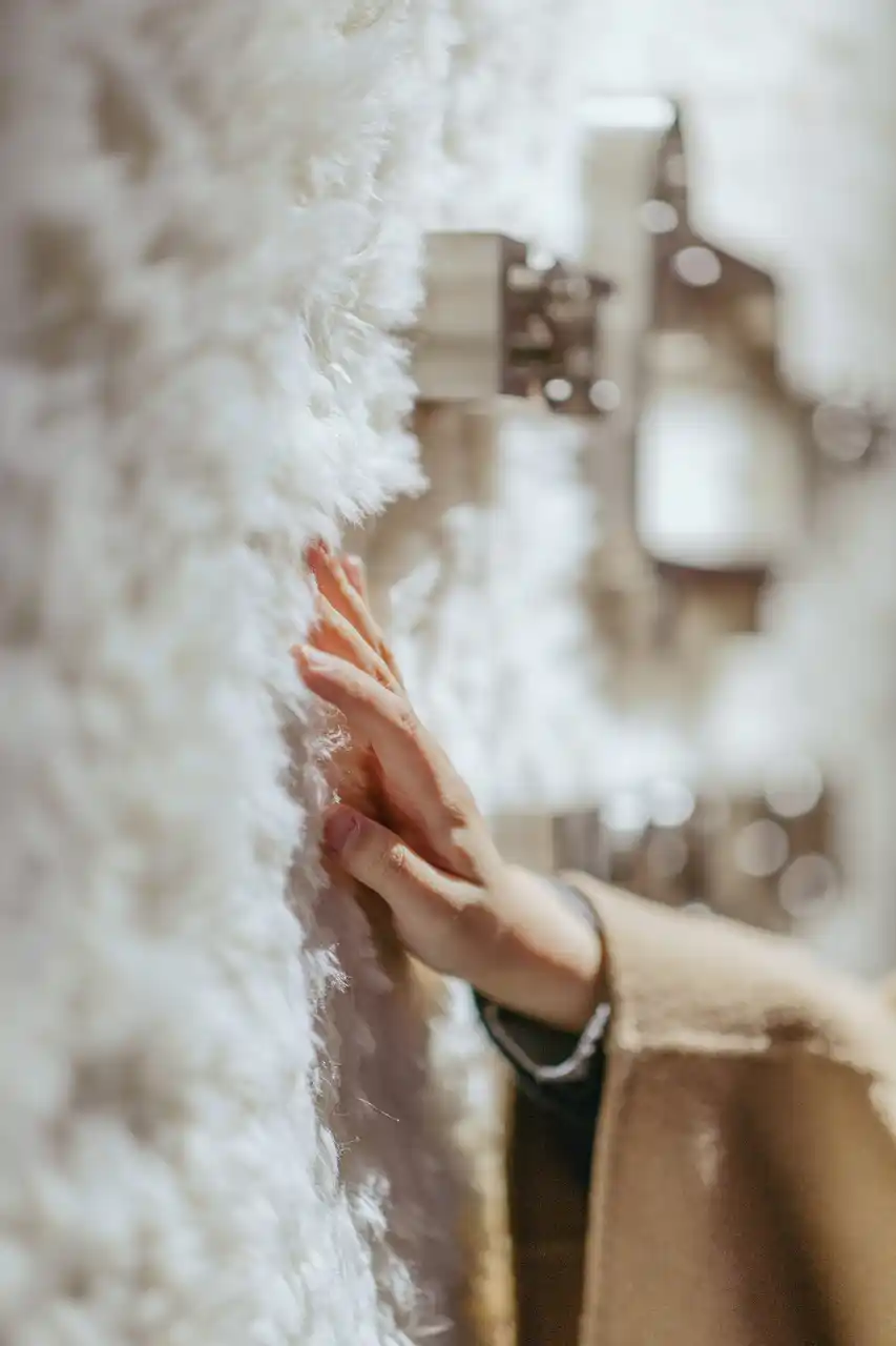 「THE WOOLBOX」のファサードは、羊飼いの小屋から着想を得たデザイン。重ねられた木製シェイグルが、自然の温もりと安らぎを想起させ、都会の中に静謐な存在感を放ちます。一歩足を踏み入れると、羊毛で覆われた壁に包まれ、過去と未来が交錯する体験の旅が始まります。ブランドの重要なマイルストーンとともに、自然とデザインがまるで「呼吸」するかのように調和し、触れることで実感できる“守られている”感覚が、静かで深遠な力となって記憶を呼び覚まします。 |