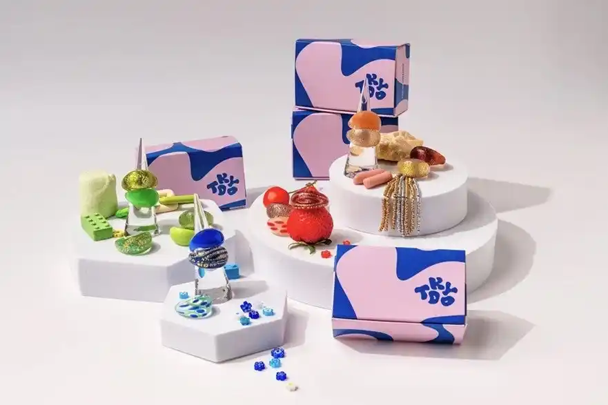 約30ものバリエーションのガラスリングから、お好きなカラーをその場でピックアップし、キャンディのようにBOXに詰め込んでご購入いただける体験型コンテンツです。 |