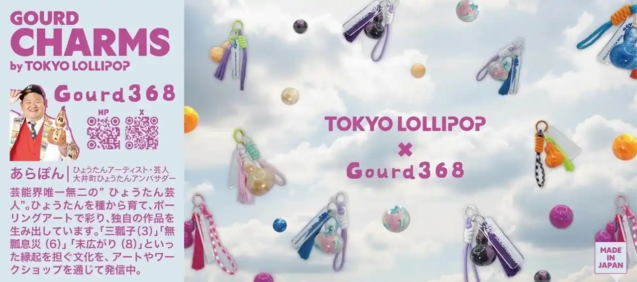 "ひょうたん芸人"のあらぽんとコラボした「TOKYO LOLLIPOP」限定『GOURD CHARMS』(ひょうたんチャーム)が登場。あらぽんが種から育てた“本物のひょうたん”を、一つひとつ手作業でマーブルペイントした、カラフルで楽しいキーホルダーです。 |