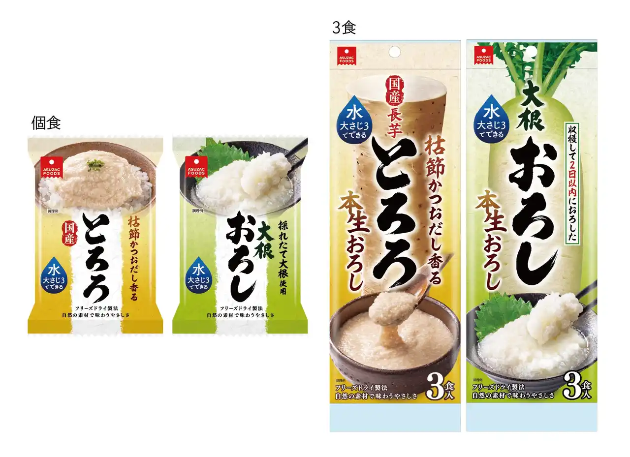 フリーズドライおよびエアードライなど乾燥食品の開発・製造を手がけるアスザックフーズ株式会社(代表取締役:久保正直、本社:長野県須坂市)が販売する「フリーズドライ国産長芋とろろ」「フリーズドライ大根おろし」が、一般社団法人日本フードアナリスト協会が主催する、第94回「ジャパン・フード・セレクション」において、最高位のグランプリを受賞いたしました。グランプリは、2万3,000人の食の専門家「フードアナリスト」が100を超えるチェック項目で評価し、100点満点中90点以上の高評価の商品のみに授与されます。 |