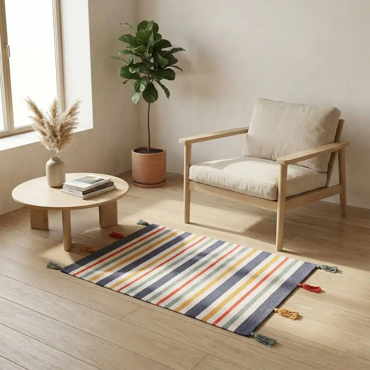 本商品は、インドの熟練職人が一枚一枚手織りで仕上げることで、独特の風合いを生み出し、インテリアのアクセントとして空間を彩ります。さらに、インド綿100%の平織り構造を採用することで軽量かつ通気性に優れ、季節を問わず快適にお使いいただける仕様です。加えて、手作りならではの品質を維持しつつも、50×70cmサイズ1,300円台~130×190cmサイズ10,000円台(税込)というお求めやすい価格帯を実現したことで、上質なラグ・マットを気軽に取り入れていただけます。 |