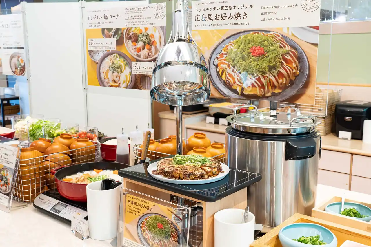| ベッセルホテル東広島の朝ごはんは、「MOTTO! 東広島のほのぼの朝ごはん」をコンセプト。吟醸酒発祥の地と言われる東広島市・酒処ならではの麹など、健康を意識した発酵食品のおいしさを味わえる和惣菜やみそ汁、スープ、スイーツを取り揃えたご当地グルメ満載の朝ごはんです。 | ||||||||||||||||||