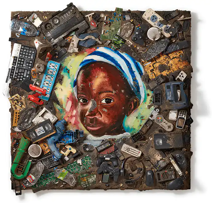 ガーナの首都アクラ近郊に位置するアグボグブロシーは、通称「世界最大級の電子機器の墓場」と呼ばれ、世界中から電子廃棄物が集まってくる場所の一つです。不要な電子機器が山積しており、現地の人々はこれらを燃やし金属を取り出して低賃金で生計を立てていますが、この過酷な環境が有毒ガスによる環境汚染を引き起こす要因となっており、住民の健康に深刻な被害を与えています。 |
