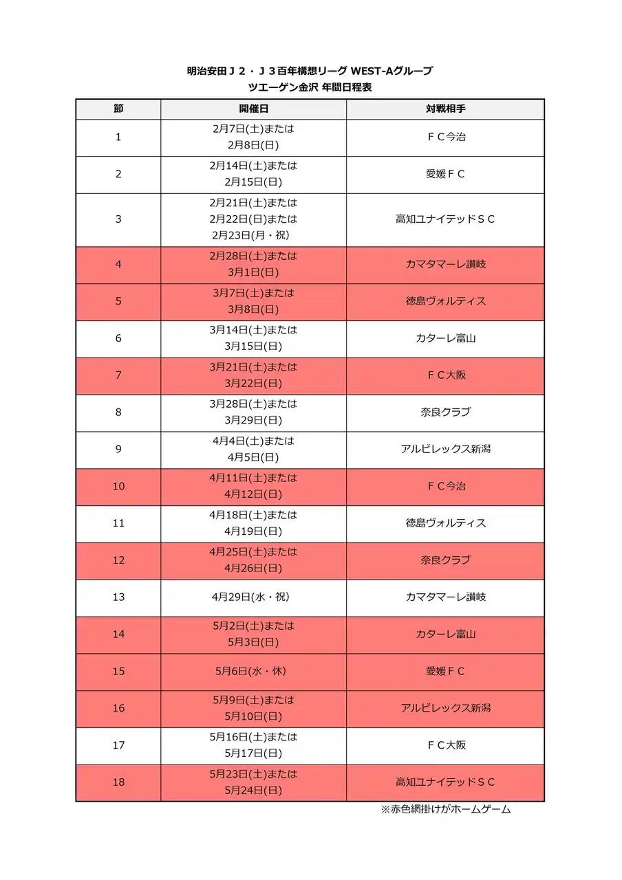 【株式会社石川ツエーゲン】 明治安田J2J3リーグ百年構想リーグ | 年間対戦カード決定!