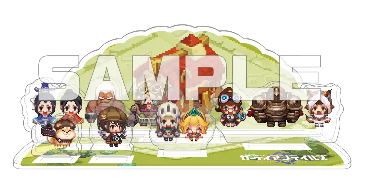 ↑『ガデテル』の世界観をイメージしたキービジュアルの大型ファブリックポスターと、飾って楽しいアクリルジオラマ。中央の騎士&姫は、「女騎士&姫」か「男騎士&姫」を選んで飾ることができます。 |
